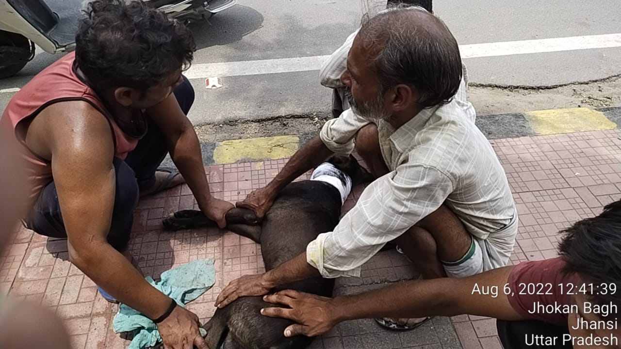 झांसी। दिन दहाड़े एक सिरफिरे युवक ने मोहल्ले में घूमने वाले कुत्ते की गर्दन पर धारदार हथियार से बार कर दिया जिससे उसकी गर्दन में गंभीर घाव हो गया।जानकारी के मुताबिक कोतवाली थाना क्षेत्र के नई बस्ती इलाके थाई मोहल्ला में एक सिरफिरा युवक रहता है। आज दोपहर को मोहल्ला का कुत्ता किसी की आहट आने पर भोंक रहा था। कुत्ते के चिल्लाने से बौखलाया सिरफिरे ने धारदार हथियार से उस कुत्ते की गर्दन पर कई बार कर दिया। धारदार हथियार से गर्दन पर हमला होने से कुत्ता गंभीर रूप से घायल हो गया। कुत्ते के स्वामी ने बताया की वह पुलिस कैंपलेंट कर कार्यवाही की मांग करेंगे।