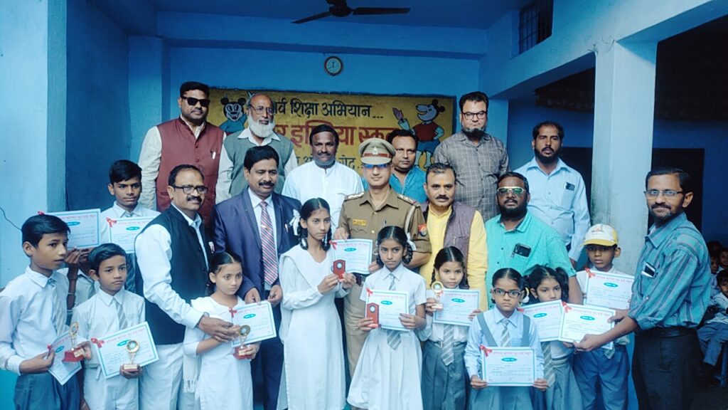 झांसी। माह नमंबर यातायात माह पर स्कूल कॉलेजों में संगोष्ठी आयोजित कर छात्र छात्राओं को यातायात के नियम बताए जा रहे ओर उन्हे जागरूक किया जा रहा है। इसी क्रम में आज यातायात पर एक संगोष्ठी शहर क्षेत्र तलैया मोहल्ला स्थित मदर इंडिया जूनियर कॉन्वेंट स्कूल में प्रबंधक मोहम्मद फारुख खान के नेतृत्व में आयोजित की गई। जिसके मुख्य अतिथि शहर कोतवाल तुलसी राम पांडे, विशिष्ठ अतिथि झांसी मीडिया क्लब अध्यक्ष मुकेश वर्मा, बार संघ के कार्यकारिणी सदस्य राजेश चोरसिया, पूर्व बार संघ उपाध्यक याकूब अहमद मंसूरी तथा कार्यक्रम की अध्यक्ष पत्रकार भवन अध्यक्ष प्रवीण जैन ने की। कार्यक्रम में उपस्थित सभी अतिथियों को हार माला पहनाकर उनका स्वागत सम्मान किया गया। कार्यक्रम में शहर कोतवाल ने छात्र छात्राओं को यातायात माह संबंधित जानकारी देते हुए यातायात के नियमों का पालन करने का आग्रह किया। वही स्कूल में पूर्व में हुई विभिन्न प्रतियोगिताओं में भाग लेने वाले छात्र छात्राओं को प्रशस्ति पत्र और स्मृति चिन्ह भेंट कर सम्मानित किया। वही स्कूल प्रबंधक मोहम्मद फारुख और उनकी टीम ने शहर कोतवाल को शॉल श्रीफल भेंट कर सम्मानित किया।