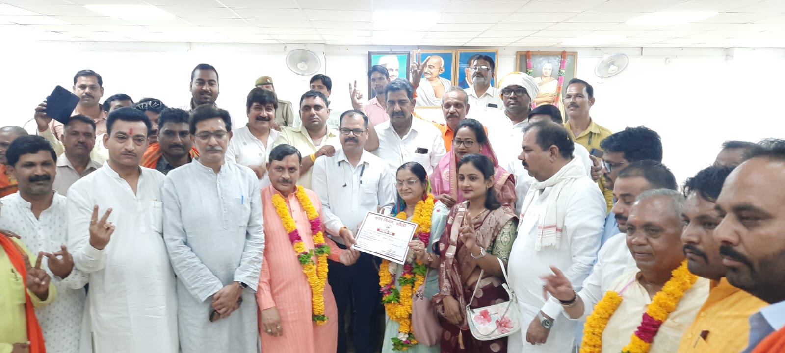 झांसी। नगर निगम के महारानी लक्ष्मीबाई सभागार में उपसभापति पद के चुनाव को लेकर समस्त कार्यकारिणी सदस्यों ने एकजुट होकर निर्विरोध उपसभापति चुनने का विचार बनाया जिस पर महापौर बिहारी लाल आर्य की अध्यक्षता में कार्यकारिणी सदस्यों के बीच एक राय होकर उपसभापति श्रीमती सुशीला दुबे को निर्विरोध चुन लिया गया जिस पर सभी कार्यकारिणी सदस्यों ने उपसभापति श्रीमती सुशीला गोकुल दुबे को बधाई दी उपसभापति बनने के पश्चात निर्वाचन अधिकारी द्वारा प्रमाण पत्र दिया गया नगर निगम के सदन हॉल में उपसभापति के चुनाव का विधिवत कार्यक्रम चुनाव अधिकारी के बीच संपन्न हुआ जिसमें निर्विरोध उपसभापति घोषित कर दिया गया इस मौके पर सांसद अनुराग शर्मा सदर विधायक रवि शर्मा भाजपा जिला अध्यक्ष मुकेश त्रिपाठी सुनील नेनवानी भरत सेन मुकेश सोनी प्रदीप कुमार रमा कुशवाहा अमित राय नरेंद्र नामदेव आशीष चौक से आशीष रायकवार विकास खत्री गोकुल दुबे सहित अन्य पार्षद एवं भाजपा के पदाधिकारियों सहित नगर निगम के अधिकारी व कर्मचारी मौजूद रहे सभासद पद पर गोंदू कंपाउंड क्षेत्र से श्रीमती सुशीला गोकुल दुबे 6 बार पार्षद रही झांसी महानगर होने पर नगर पालिका नगर निगम घोषित हुई थी जिस ने प्रथम बार महिला उपसभापति सुशीला दुबे बनाई गई वर्ष 2023 में सभासद का चुनाव होने पर भारतीय जनता पार्टी से सभासद का चुनाव जीती सुशीला दुबे कार्यकारिणी सदस्य बनाएंगे और आज उपसभापति का चुनाव होने पर निर्विरोध उपसभापति पद पर आसीन हुई उपसभापति सुशीला दुबे तीन बार निर्दलीय चुनाव जीत चुकी है और दो बार समाजवादी पार्टी से चुनाव जीती और वर्ष 2030 में भारतीय जनता पार्टी से टिकट लेकर सभासद पद पर विजई घोषित हुई भारतीय जनता पार्टी के पूर्ण बहुमत के साथउपसभापति बनने पर भाजपा के पदाधिकारियों ने बधाई दी इस मौके पर और बिहारी लाल आर्य ने कहा भारतीय जनता पार्टी ने हमेशा महिलाओं को सम्मान दिया है और एक और इस बार भाजपा से उपसभापति पद पर श्रीमती सुशीला दुबे को निर्विरोध विजई घोषित किया कहा कि भारतीय जनता पार्टी शहर के विकास को लेकर संपूर्ण रुप से एकजुट होकर कार्य करेगी और सभी पार्षदों की राय के अनुसार के शहर के विकास पर कार्य किया जाए।