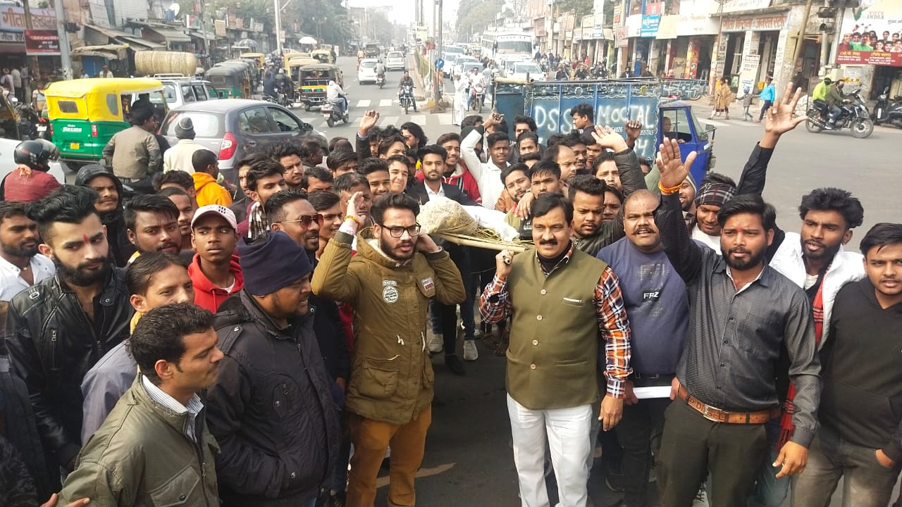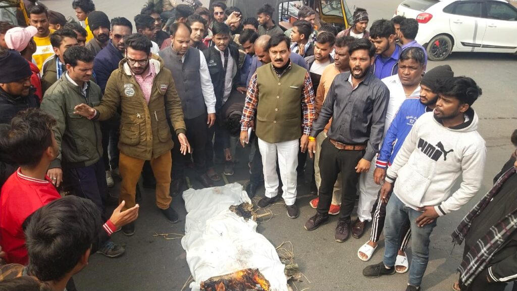 झांसी। रामचरित्र मानस पर गलत टिप्पणी करने पर हिंदू संगठनों में भारी रोष है। हिंदू संगठनों ने जमकर विरोध प्रदर्शन करते हुए रामचरित्र मानस पर टिप्पणी करने वाले नेता स्वामी प्रसाद मौर्य पर एफ आई आर दर्ज करने ओर कार्यवाही की मांग की।इसी क्रम में राष्ट्र भक्त संगठन ने जमकर विरोध प्रदर्शन करते हुए स्वामी प्रसाद मौर्य की अर्थी निकाल कर विरोध प्रकट कर कार्यवाही की मांग की।मंगलवार को राष्ट्र भक्त संगठन के केंद्रीय अध्यक्ष अंचल अड़जरिया के नेतृत्व में दर्जनों कार्यकर्ता इलाईट चौराहा पहुंचे स्वामी प्रसाद मौर्य की अर्थी निकाल कर पुतला फूंक दिया। इस दौरान अंचल ने कहा समाजवादी पार्टी तत्काल ऐसे जनभावनाओं को भड़काने वाले और रामचरित्र मानस पर अभद्र टिप्पणी करने वाले नेता स्वामी प्रसाद मौर्य को पार्टी से निष्काशित करे और प्रशासन इस पर एफ आई आर दर्ज कर कार्यवाही करे।