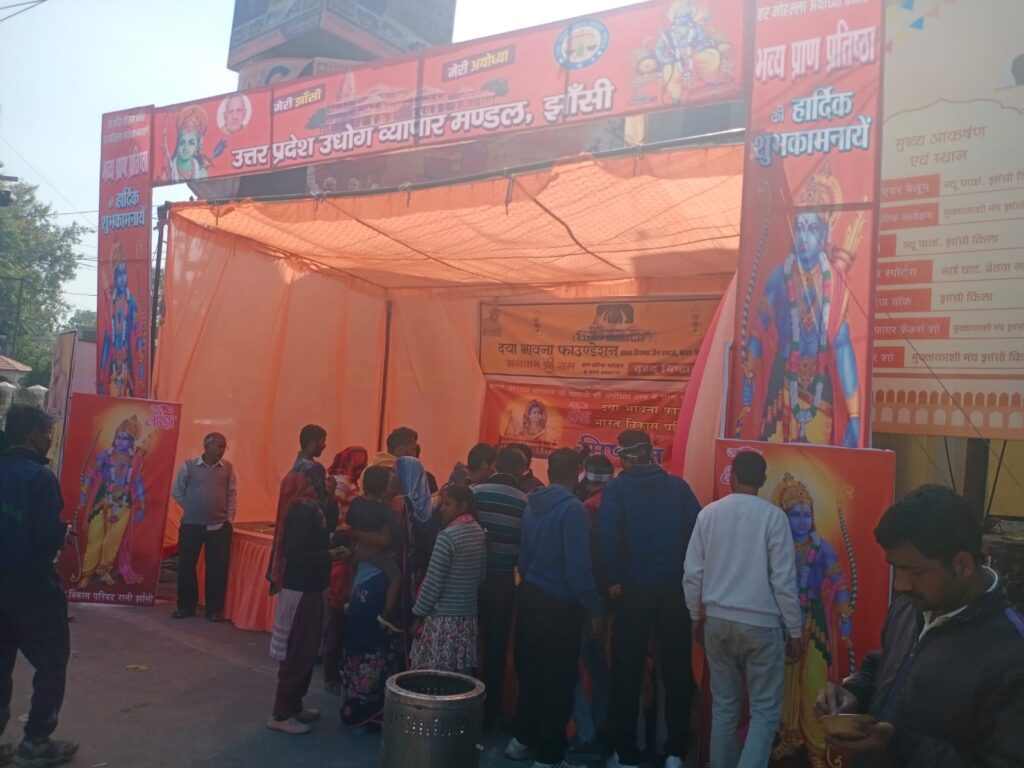 झांसी। प्राण प्रतिष्ठा के अवसर पर दया भावना फाउंडेशन द्वारा झांसी के कई चौराहों पर मिस्ठान आदि का वितरण किया गया। सोमवार को दया भावना फाउंडेशन प्रणेता पूज्य मुनिश्री अविचल सागर की पावन प्रेरणा से करोड़ों सनातनियो के आराध्य श्रीराम जी की वर्षों से अपेक्षित प्रतिमा की प्रतिष्ठा के अवसर पर आज दया भावना फाउंडेशन एवम स्थानीय जैन समाज द्वारा नगर के विभिन्न स्थानों पर मिष्ठान वितरण का आयोजन किया । जिसमें नगर के प्रमुख इलाइट चौराहा पर राजेश जैन (पूर्व सभासद) के मुख्य संयोजन में संदीप जैन, तरु, अभिषेक, रोबिन आदि के द्वारा मिष्ठान वितरण हुआ।शहर सिंधी होटल तिराहे पर सनी जैन ‘ चैनू,’ देवेश जैन (KD) के मुख्य संयोजन में, प्रदीप जैन “आदित्य” पूर्व केंद्रीय मंत्री के विशिष्ठ आथित्य में मिष्ठान वितरण किया गया इस अवसर पर प्रमोद वैरायटी, अतुल जैन ‘सर, यश, प्रिंस, विशाल, दिव्यांश,संदीप मोबाइल, ममता, एना रूपम, दीपाली जैन के सहयोग से मिष्ठान वितरण सम्पन्न हुआ। जैन बड़ा मंदिर गांधी रोड पर पुलक चेतना मंच, मुख्य शाखा द्वारा संजय सिघई, दिनेश जैन डी के मुख्य संयोजन में अशोक संफ्रानसिटी डा. रुचि जैन, श्रीमती राशि जैन के संयोजन में “स्पर्श सुपर स्पेशिलिटी हॉस्पिटल डा. अभिषेक जैन, प्रियंका जैन, अभिनव जैन के संयोजन में बुंदेलखंड सुपरस्पेशिलिटी हॉस्पिटल डा. निर्देश जैन के संयोजन में हजारों रामभक्तों को मै मिष्ठान वितरण किया गया।