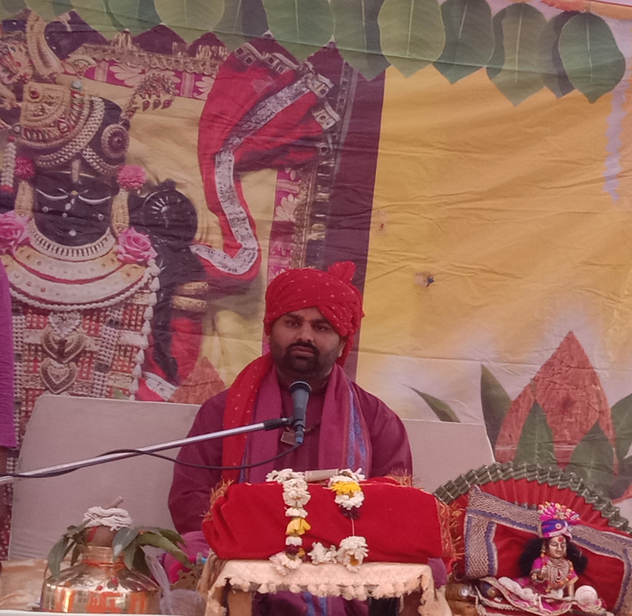 झाँसी। भोजला स्थित बडी माता मंदिर पर चारधाम यात्रा से लौटकर आये भोजला निवासियों द्वारा आयोजित श्रीमद भागवत कथा ज्ञान यज्ञ के पंचम दिवस का प्रसंग सुनाते हुए श्रीधाम ददरौआ से पधारे कथा व्यास विवेक मिश्रा शास्त्री ने पंचम दिवस भगवान श्रीकृष्ण की बाल लीलाओं का विस्तार से वर्णन किया।उन्होंने कहा कि भगवान कृष्ण ने 6 वर्ष की उम्र में कालिया नाग को नाथ कर यमुना जल को पवित्र किया। वे कहते हैं कि जब जीव मन रूपी गेंद यानि कि भगवान का ध्यान करेगा तब तब वासना के कालिया नाग को मार कर प्रभु हृदय को पवित्र कर देंगे, इसके बाद भगवान ने 7 वर्ष की उम्र में गिरराज को धारण किया, इन्द्र के अभिमान को नष्ट करने के लिए ही भगवान कृष्ण ने गिरिराज गोवर्धन की पूजा करवायी। कथा व्यास ने कहा कि भागवत दर्शन ही कृष्ण भगवान के दर्शन है। भागवत में भगवान की बाल लीलाओं का प्रसंग सुनकर श्रोतागण भाव विभोर हो उठे।कथा व्यास ने सुंदर भजन सुनाये “छोटी छोटी गइंया छोटे छोटे ग्वाल छोटो सो मेरो मदन गुपाल”जिन्हें सुन श्रोता झूम उठे। प्रारंभ में मुख्य यजमान श्रीमती महादेवी मनोज यादव ने कथा व्यास का माल्यार्पण कर श्रीमद भागवत पुराण का पूजन कर आरती उतारी। संचालन एवं मूल पाठ राहुल तिवारी ने किया। इस मौके पर अमरदास महाराज भोजला, श्रीमती लीला घनश्याम यादव, श्रीमती किरन सुरेश यादव सहित अनेकों ग्रामवासी मौजूद रहे। अंत में मुख्य यजमान मनोज यादव ने सभी का आभार व्यक्त किया।