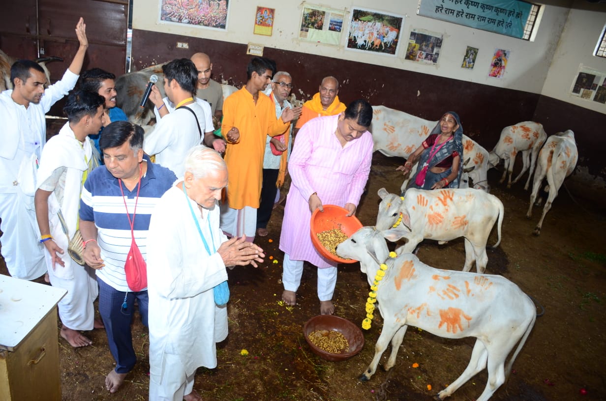झांसी। गोपाष्टमी पर गौ माता का पूजन किया गया। गाय मां की पूजा कर विश्व शांति बनाए रखने की कामना की गई। कथा में माता गौ की महिमा विस्तार से बताई गई।अंतर्‌राष्ट्रीय कृष्णभावनामृत संघ के तत्वावधान में अन्दर सैंयर गेट स्थित इस्कॉन मंदिर के पावन प्रांगण में गोपाष्टमी पर्व हर्षोल्लास के साथ मनाया गया। भक्त पियूष रावत ने गौ माता की महिमा बताइ। भगवान ने स्वयं अपने मुख से बोला है कलयुग में गौ माता की भक्ति ही बैकुंठ का मार्ग दिखा सकती है और बैकुंठ ले जा सकती है। गौ माता यदि किसी का भाग्य यदि बदल सकती है तो गौ माता ही एक ऐसी शक्ति है जो सबके भाग बदल सकती है और आओ हम सब मिलकर गौ सेवा करें गोपालन करें। हम सभी गौ माता से विश्व शांति का आशीर्वाद मांगा। इस्कॉन मंदिर में सुबह मंगला आरती हुई। प्रातःकाल गाय माता का अभिषेक किया गया। नए परिधान धारण कराए गए। उनका श्रृंगार किया गया। गौ माता के अंग में मेहंदी, हल्दी, रंग के छापे लगाए गए दीपदान किया। धूप-दीप, अक्षत, रोली, गुड़ आदि वस्त्र तथा जल से गाय का पूजन किया गया। धूप-दीप से आरती उतारी गई। प्रसाद भोग लगाया गया। गाय की परिक्रमा भी की गई। गौकथा को कहते हुये मंदिर के ब्रह्मचारी दामोदर बंधू दास प्रभु ने बताया कि दीपावली के बाद आने वाली कार्तिक शुक्ल अष्टमी को गोपाष्टमी पर्व के रुप में मनाया जाता है। इस दिन गौ, ग्वाल और भगवान श्रीकृष्ण का पूजन करने से विशेष लाभ मिलता है। गाय को माता का स्थान दिया गया है। अतः गाय को गौ माता (गौमाता) भी कहा जाता है। पौराणिक मान्यताओं के अनुसार इसी दिन भगवान श्रीकृष्ण ने गौ चारण लीला शुरु की थी। कार्तिक शुक्ल अष्टमी के दिन मां यशोदा ने भगवान कृष्ण को गौ चराने के लिए जंगल भेजा था। गाय की पूजा करने से लोगों के कष्ट खत्म हो जाते हैं। मनुष्य को धर्मलाभ प्राप्त होता हैं। मंदिर में विराजे भगवान राधा-कृष्ण जू की विशेष पूजा अर्चना गोपाष्टमी पर की गई। जल्द सुबह से शुरु हुआ कार्यक्रम देर रात्रि तक चलता रहा। दामोदर बंधू दास प्रभु ने बताया कि 10 नवंबर को शाम 4:00 बजे से 10:00 बजे तक झाँसी के इतिहास में पहली बार भक्ति मेले में झाँसी के अलावा विदेशो से भी भक्त आ रहे हैं जो कि भक्तिमय मेले में कीर्तन मेला होगा जो इस्कॉन मंदिर में 4:00 बजे से लेकर और रात्रि 10:00 बजे तक होगा देखने लायक योजना है आप सभी लोगों से निवेदन है और अनुरोध है कि आप भी भक्ति में मेला में कुछ समय अपना आकार दान दें! इस अवसर पर मंदिर के प्रमुख सहयोगी सुरेंद्र राय, महेश सर्राफ, पियूष रावत, राजीव अग्रवाल,अशोक सेठ, मनीष नीखरा, रमेश राय , अजय अग्रवाल,प्रिय गोविन्द दास , आरके टेलर,प्रभात शर्मा,मुकेश अग्रवाल, विनोद अवस्थी ,अशोक गुप्ता, व्रज जन , कन्हाई ठाकुर, सुन्दर मोहन , विजय साहू, दिलीप साहू आदि उप