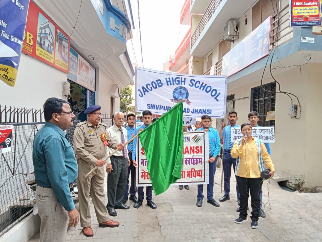 झांसी। भारत निर्वाचन आयोग के स्वीप अभियान 2024 के अंतर्गत जिलाधिकारी /जिला निर्वाचन अधिकारी अविनाश कुमार के कुशल नेतृत्व में आगामी लोकसभा सामान्य निर्वाचन 2024 में शत प्रतिशत मतदान कराने हेतु विभिन्न उपायों से मतदाताओं को जागरूक किया जा रहा है ऐसे में बच्चे भी लोगों को जागरूक करने में किसी से पीछे नहीं है इसी के चलते आज सीपरी बाजार झांसी स्थित जैकब हाई स्कूल से एक वृहद मतदाता जागरूकता रैली का शुभारंभ मुख्य अग्निशमन अधिकारी राज किशोर राय ने हरी झंडी दिखाकर किया ,रैली का संयोजन व संचालन वरिष्ठ अग्नि सचेतक सुश्री प्रगति शर्मा ‘बया ‘ द्वारा किया गया ,उक्त रैली में बच्चों ने आम जनमानस से शत प्रतिशत मतदान कर झांसी को नंबर वन बनाने की अपील इन नारों के साथ की कि “वोट जैसा कुछ नहीं वोट जरूर दें “,चुनाव का पर्व, देश का गर्व” ‘हम बच्चों ने ठाना है, सबसे मतदान कराना है ” कहते हुए रैली सीपरी बाजार का भ्रमण करती हुई वापस विद्यालय में समाप्त हुई | उक्त रैली में विद्यालय के प्रबंधक सैमसन जैकब ,अग्नि सचेतक दीपशिखा शर्मा ,फायरमैन शाहरुख खान ,अनुपम यादव ,धीरज कुमार, सतीश शर्मा ,सुनील कुमार ,हेमंत वर्मा आदि प्रवक्ता गण उपस्थित रहे ।सभी का आभार विद्यालय प्रबंधक सैमसंन जैकब ने व्यक्त किया।
