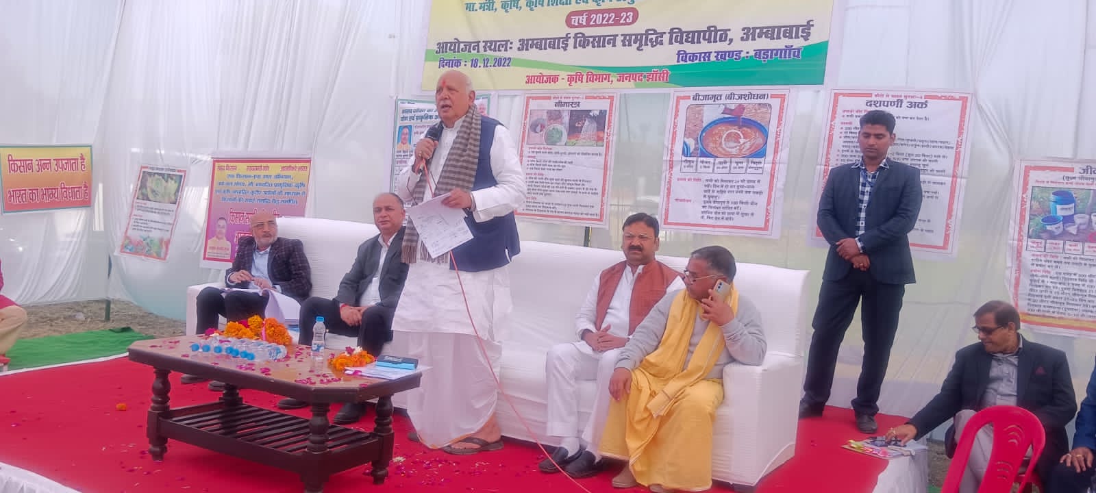 झाँसी । आज मंत्री, कृषि, कृषि शिक्षा एवं कृषि अनुसंधान विभाग (उत्तर प्रदेश) सूर्य प्रताप शाही के जनपद भ्रमण कार्यक्रम के दौरान उनके मुख्य आतिथ्य में विकासखंड स्तरीय रबी गोष्टी एवं किसान मेले का आयोजन विकासखंड बड़ागांव स्थित अंबाबाई किसान समृद्धि विद्यापीठ, अंबाबाई तथा बुंदेलखंड कृषि विकास एवं जल संचयन/संरक्षण विचार गोष्ठी का आयोजन केंद्रीय कृषि विश्वविद्यालय झांसी में आयोजित किया गया। सर्वप्रथम रबी गोष्ठी एवं किसान मेले में माननीय मंत्री ने कृषक भाइयों को संबोधित करते हुए कहा कि जल संरक्षण की दिशा में जनपद में जल सखियों द्वारा सराहनीय कार्य किए गए हैं। उन्होंने कहा कि हमें पानी के सदुपयोग पर विशेष ध्यान देने की आवश्यकता है अतः जल संरक्षण हेतु बुंदेलखंड क्षेत्र में पानी की कमी को देखते हुए पानी का प्रयोग अत्यधिक सीमित मात्रा में करना चाहिए जिससे आने वाली पीढ़ी को उपयोगिता अनुसार पर्याप्त मात्रा में पानी की उपलब्धता प्राप्त हो सके। किसानों की स्थिति में सुधार लाने हेतु केंद्र सरकार एवं राज्य सरकार द्वारा आए दिन नए-नए प्रयास किए जा रहे हैं। उन्होंने कहा कि हमारी कृषक भाई अपने खेतों में रासायनिक खादों का प्रयोग आवश्यकता अनुरूप अत्यधिक कम मात्रा में करें क्योंकि रासायनिक उर्वरक हमारे खेतों की उत्पादन क्षमता को प्रभावित करते हैं जिससे फसल की उत्पादन में भी कमी आती है साथी खेतों में मिट्टी की गुणवत्ता भी कम होती जाती है। प्राकृतिक खेती की ओर किसानों का ध्यान आकर्षित करते हुए मंत्री ने कहा कि यहां के किसान अपने खेतों में गोबर की खाद एवं गोमूत्र का प्रयोग सहित अन्य स्वदेशी तरीकों का प्रयोग करें जिससे खेतों की उर्वरता क्षमता के साथ उत्पादन क्षमता में भी वृद्धि हो सके। हमारे देश के प्रधानमंत्री एवं प्रदेश के मुखिया मुख्यमंत्री जी के नेतृत्व में प्रतिवर्ष 7.5 कुंतल बीजों का निशुल्क वितरण कृषि विभाग के माध्यम से किया जा रहा है उन्होंने कहा कि वर्तमान सरकार के सत्ता में आने के पश्चात जल संरक्षण की दिशा में अनेक कार्य किए गए हैं जिसके तहत खेत तालाब योजना के अंतर्गत बुंदेलखंड में अनेक तालाब खोदे जा रहे हैं कृषक भाई अपनी आय में वृद्धि लाने हेतु प्रधानमंत्री फसल बीमा योजना के अंतर्गत अपने खेतों में उत्पादित फसल का बीमा अनिवार्य रूप से कराएं जिससे आपातकालीन स्थिति में उन्हें सरकार की सहायता प्राप्त हो सके मुख्यमंत्री द्वारा बुंदेलखंड में प्राकृतिक खेती को बढ़ावा देने की दिशा में कार्य किया जा रहा है। सरकार द्वारा कृषि विभाग के माध्यम से किसानों की आय में वृद्धि लाने हेतु अनेक जन कल्याणकारी योजनाएं संचालित की जा रही हैं। किसान भाई इन योजनाओं का भरपूर लाभ लेते हुए अ