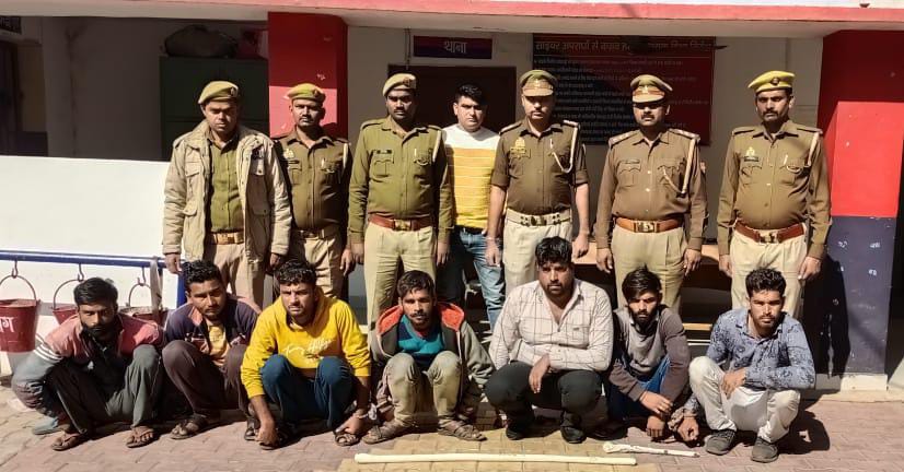 झांसी। एसएसपी राजेश एस के निर्देशन में अपराध और अपराधियों के खिलाफ चलाए जा रहे अभियान के तहत प्रेमनगर थाना पुलिस ने सात हत्यारोपियो को दबोच कर दोहरे हत्याकांड का खुलासा कर दिया। करीब डेढ़ माह पूर्व प्रेमनगर और बबीना थाना क्षेत्र के बॉर्डर पर मथुरा पुरा में हुए दोहरे हत्याकांड का खुलासा करने में लगी प्रेमनगर थाना पुलिस को आज बड़ी सफलता हाथ लग गई। पुलिस ने सात आरोपियों को गिरफ्तार कर उनके कब्जे से घटना में प्रयुक्त हथौड़ा और डंडा बरामद कर लिया। वही इस घटना का एक आरोपी पहले से ही जेल में है।बुधवार को पुलिस लाइन सभागार में आयोजित पत्रकार वार्ता के दौरान एसएसपी राजेश एस ने जानकारी देते हुए बताया की करीब डेढ़ माह पूर्व प्रेमनगर थाना क्षेत्र के मथुरा पुरा में खाली प्लाट पर कुछ लोगों के रंजित अवस्था में पड़े होने की सूचना पर मौके पर पहुंची पुलिस ने जांच पड़ताल की थी। जिसमे एक व्यक्ति मनोज निवासी दुर्गापुर की मौके पर मौत हो गई थी, दो अन्य घायल थे। जिन्हे उपचार के लिए मेडिकल कोलेज में भर्ती कराया था जहां उपचार के दौरान दूसरे महेश निवासी सफा गांव की भी मौत हो गई थी। घटना स्थल का निरीक्षण और मौके से मिले साक्ष्य के आधार पर घटना हत्या की ओर इशारा कर रही थी। पुलिस ने अज्ञात लोगों के विरुद्ध गंभीर धाराओं में मुकदमा दर्ज कर विवेचना शुरू कर दी थी। विवेचना के दौरान जानकारी मिली की घटना को अंजाम जमीन की खरीद फरोख्त को लेकर हुए विवाद के चलते हथौड़ा और डंडा मारकर हत्या की गई थी। इस घटना में एक आरोपी विनोद श्रीवास निवासी हसारी को पुलिस ने पहले ही गिरफ्तार कर जेल भेज दिया था। इस मामले में अन्य आरोपी फरार चल रहे थे। देर रात प्रेमनगर थाना प्रभारी निरीक्षक संजय शुक्ला और उनकी टीम ने गस्त के दौरान इस घटना में जुड़े सात आरोपी जंडेल, पप्पू उर्फ मोहर सिंह, सतीश, सज्जन सिंह उर्फ सचिन, आशीष, सुनील, अरुण समस्त निवासी ग्राम सफा थाना बबीना को गिरफ्तार कर लिया। पुलिस ने इनके कब्जे से घटना में प्रयुक्त हथौड़ा और डंडा बरामद कर लिया। पूछताछ में पकड़े गए आरोपियों ने बताया की पूर्व में गिरफ्तार हुआ आरोपी विनोद श्रीवास मृतक महेश जो एपेक्स फैक्ट्री में कार्य करता है, उसके साथ जमीनों की खरीद फरोख्त का कार्य करता था। एक जमीन की खरीद फरोख्त को लेकर मनमुटाव चल रहा था। घटना वाले दिन सभी लोग पार्टी कर रहे थे। तभी विवाद हो गया और इसी विवाद के चलते मारपीट कर हथौड़ा और डंडे से तीनो पर हमला कर दिया था। पुलिस ने सभी आरोपियों को लिखापढ़ी कर जेल भेज दिया है।