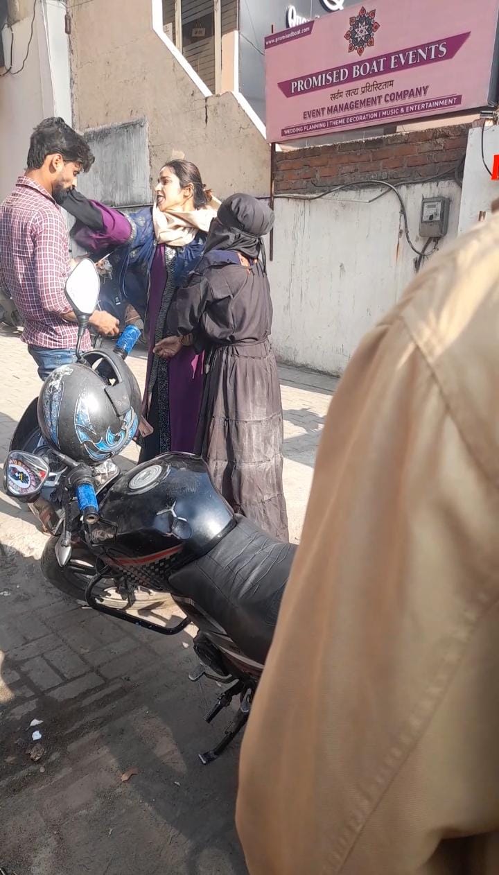 झांसी। एक तरफ है घर वाली ओर एक तरफ बाहर वाली दोनों खतरे की घंटी क्यों मैने गले लगा ली। यह गाना एक युवक पर उस समय सटीक बैठा जब पति पत्नी और वो में कई घंटे ड्रामा चलता रहा। इस ड्रामे में पत्नी ने पति की पिटाई भी की ओर वो हाथ जोड़कर माफी मांगती रही। यह तमाशा वहां खड़े कई लोगों ने अपने अपने मोबाइल में कैद कर शोशल मीडिया पर वीडियो वायरल कर दिया। मामला गुरुवार को आतिया तालाब स्थित एक बैंक के नजदीक का है। जहां एक युवक एक महिला के साथ चार पहिया गाड़ी से उतरा। तभी पीछा कर रही एक महिला बच्चे के साथ वहां पहुंची और जोर जोर से चिल्लाते हुए तमाशा बनाकर उस युवक को अपना पति ओर उसके साथ मौजूद महिला को अपनी सौतन बताकर युवक पर थप्पड़ों से बरसात कर दी। पत्नी पति को पीट रही थी और उसकी प्रेमिका हाथ जोड़ कर लगातार माफी माफी मांग रही थी। यह तमाशा देख वहां लोगों की भीड़ लग गई। लोगों ने इस घटना का वीडियो बनाकर शोशल मीडिया पर पोस्ट कर जमकर मजे लूटे।