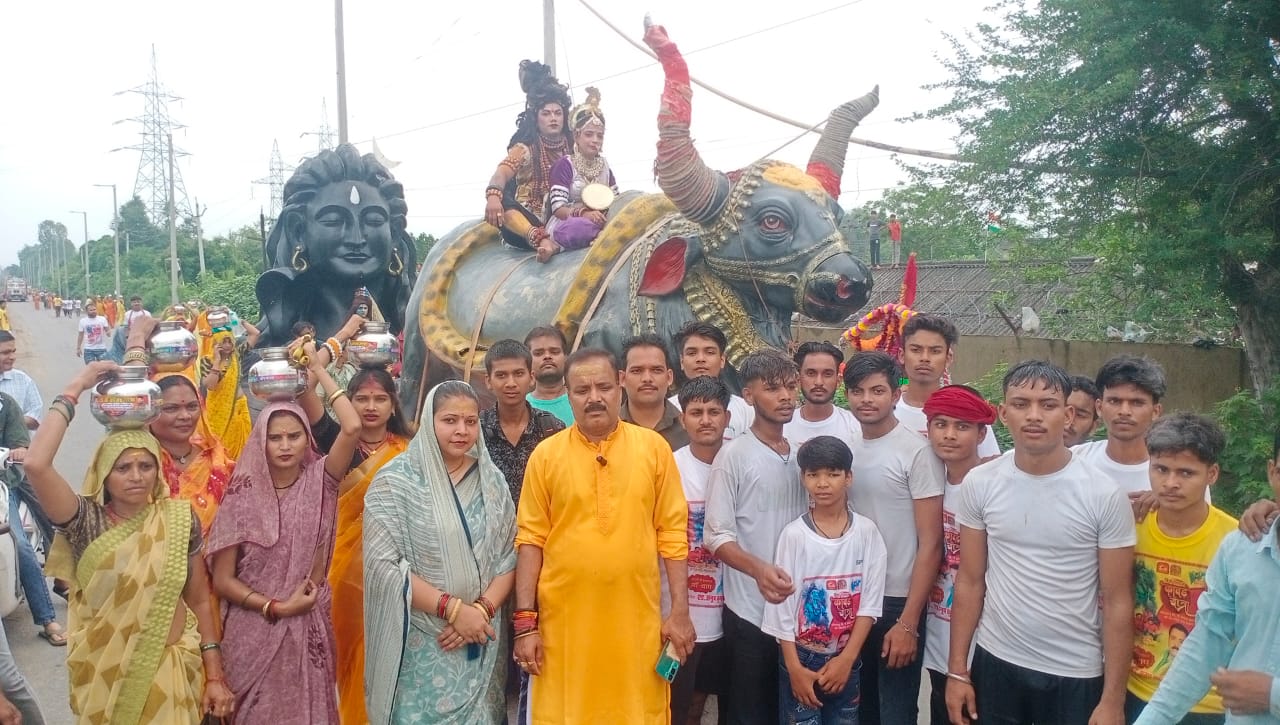 झांसी। बड़ागांव से चिरगांव भगवान शिव मन्दिर तक निकलने वाली कांवड़ यात्रा इस वर्ष नौ बी बार भी बड़े ही धूमधाम से डीजे ढोल नगाड़े के साथ निकाली गई। इस कांवड़ यात्रा में सैंकड़ों महिलाएं अपने सर पर कलश रखा कर चल रही थी, कांवड़िए कांवड़ लेकर आगे आगे भगवान भोलेनाथ के स्वरूप शिव तांडव करते हुए चल रहे थे, वही भगवान पशुपति नाथ का स्वरूप मनमोहक आकर्षण का केंद्र रहा। श्रावणमास के अंतिम सोमवार को अनूप शिवहरे देहाती, दिलीप शिवहरे के नेतृत्व में हर वर्ष की तरह इस वर्ष की विशाल कांवड़ यात्रा निकाली गई। कांवड़ यात्रा बड़ागांव के ग्राम बराठा में नदी से पवित्र जल भरकर कलश ओर कांवड़ लेकर महिलाएं ओर कांवड़िए चिरगांव स्थित भगवान शिव के मन्दिर के लिए पैदल चले। इस दौरान कांवड़ यात्रा में डीजे की धुन पर मथुरा वृंदावन से आई भगवान शिव पार्वती के स्वरूप ओर शिवतांडव की टोली ने नाचते झूमते शिव की आराधना की। करीब तीन किलो मीटर लंबी इस कांवड़ यात्रा में भगवान पशुपति नाथ का स्वरूप, भगवान शिवलिंग का स्वरूप आकर्षण का केंद्र रहा। कांवड़ यात्रा में करीब तीन से चार हजार की संख्या में पीले वस्त्रों को धारण किए महिला, पुरुष, बच्चे बम बम भोले के जयकारे के साथ कांवड़ लेकर जा रहे थे। कांवड़ यात्रा का विशाल स्वरूप बता रहा था कि बड़ागांव से लेकर चिरगांव तक आस्था का सैलाब उमड़ा है। इस दौरान कांवड़ यात्रा का जगह जगह फूल वर्षा से स्वागत किया गया साथ ही जगह जगह कांवड़ियों को जलपान की व्यवस्था भी कराई गई।