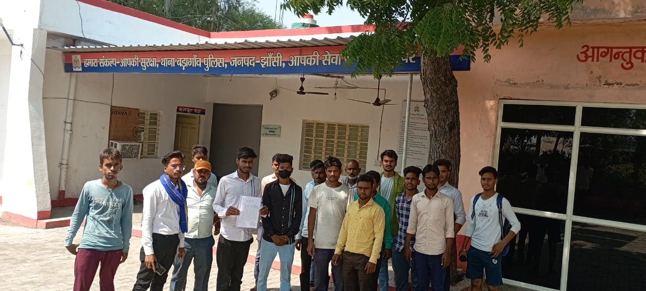 झांसी। बड़ागांव थानाक्षेत्र अंतर्गत ग्राम टाकोरी में दबंगों ने एक ग्रामीण को रोक कर उसकी पुलिस की लाठियों से पिटाई कर दी। घटना से अक्रोशित दर्जनों ग्रामीण थाना बड़ागांव पहुंचे और शिकायती पत्र देकर कार्यवाही की मांग की।जानकारी के मुताबिक बड़ागांव थाना क्षेत्र ग्राम टाकोरी निवासी दलित युवक रोहित ने पुलिस को दिए शिकायती पत्र में आरोप लगाते हुए बताया की आज सुबह वह साइकिल से मेडिकल की ओर जा रहा था। तभी रास्ते में गांव के रहने वाले दबंगों ने बाइक लगाकर उसका रास्ता रोक लिया और पुरानी रंजिश को लेकर गाली गलौज करते वहां मौजूद पुलिस कर्मियों की लाठी उठाकर उसकी पिटाई कर दी और जान से मारने की धमकी देकर भाग गए। पीड़ित ने बताया गांव में कल रात कोई विवाद की सूचना पर दो पुलिस कर्मी वहां लगे थे उन्ही की लाठियों से पीटा है। वही आरोप लगाया है की मारपीट करने वाले वही दबंग है जिन्होंने पूर्व में एक गोली कांड की घटना की थी। थाना पहुंचे दर्जन भर ग्रामीणों ने कार्यवाही की मांग की है।