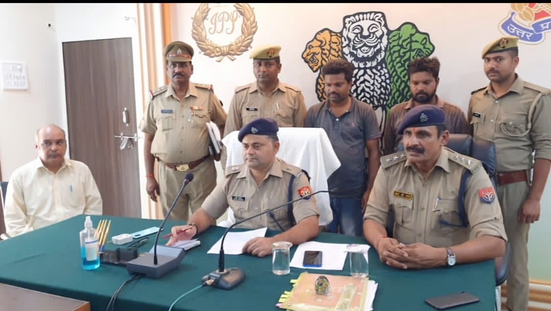 झांसी। पेट्रोल पंप मालिक को घर में बंधक बनाकर दिन दहाड़े पंप कर्मियों को डरा धमका कर लूटकांड की घटना करने वाले दो शातिर लुटेरों को नवाबाद पुलिस ने गिरफ्तार कर लिया। पुलिस ने उनके कब्जे से लूट में चाकू तथा प्लास्टिक का असलाह बरामद कर लिया। 24 घंटे में लूटकांड की घटना का सफल अनावरण करने पर पुलिस टीम को 51 सौ का नकद पुरस्कार दिया गया।मंगलवार को पुलिस लाइन स्थित सभागार में आयोजित पत्रकार वार्ता के दौरान एसपी सिटी विवेक त्रिपाठी ने जानकारी देते हुए बताया की सोमवार को दिन दहाड़े नवाबाद थाना क्षेत्र स्थित सिविल लाइन में रहने वाले कबीर खन्ना पुत्र चांद खन्ना के घर दो बदमाशों ने घुस कर चाकू की नोक पर डरा धमका कर उनसे रूपयो की मांग की। जब रुपए घर नही मिले तो दोनो बदमाश कबीर को बंधक बनाकर पेट्रोल पंप लाए यहां भी उन्हे नकदी नही मिली। इस पर बदमाश पम्प मालिक का मोबाइल लूट कर भाग गए थे। घटना की सूचना पर एसएसपी शिवहरि मीना के निर्देशन मे गठित की गई नवाबाद, स्वाट टीम ने तत्काल कार्यवाही करते हुए दोनो बदमाशों को रेलवे इनसिट्यूट के पास से गिरफ्तार कर घटना में प्रयुक्त चाकू और लूटा गया मोबाइल फोन बरामद कर लिया। पुलिस टीम के सफल अनावरण पर एसएसपी की ओर से 51 सौ का नकद पुरस्कार दिया गया। पकड़े गए बदमाशों के नाम भूपेंद्र सेन पुत्र उमाशंकर निवासी आउट हाउस बंगला नंबर 51 सदर बाजार तथा दूसरे का नाम राहुल सेन बताया। एसपी सिटी के मुताबिक पकड़े गए बदमाशों में राहुल सेन पूर्व में पेट्रोल पंप मालिक कबीर खन्ना के पंप पर ही कार्य करता था।