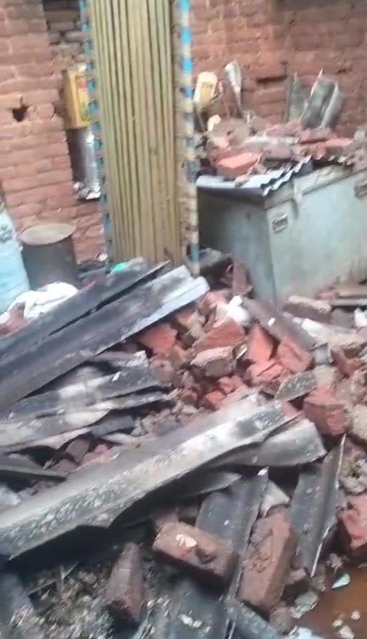 झांसी। दोपहर बाद आई तेज आंधी का कहर इस कदर बरपा की जिले में कई स्थानों पर पेड़ और बिजली के खंबे विधुत तार टूट गए। वही रक्सा क्षेत्र में दो घरों की छत गिरने से कई लोग घायल हो गए, घर में रखा सारा सामान ध्वस्त हो गया वही रक्सा थाना की छत पर लगा सोलर प्लांट की प्लेट भी उड़ गई। हालाकि सबसे अच्छी बात यह रही कि अभी तक कोई जनहानि नही हुई। जानकारी के मुताबिक बुधवार की दोपहर बाद आई तेज आंधी का कहर इतना भयंकर था कि लोग अपने अपने घरों में छिप गए। लोगों ने खिड़की दरवाजे बंद कर लिए। बड़े बड़े पेड़ जमीन पर धराशाई हो गए तो कही बिजली के तार टूट गए जिससे विद्युतापूर्ति ठप्प हो गई। वही रक्सा इलाके के ढिकोली गांव में मानसिंह अहिरवार, ओर उमेश चौबे के मकान की छत भर भरा कर गई। जिससे मकान में रखा सारा सामान दबकर ध्वस्त हो गया वही घर में मौजूद दोनो के परिजनों में सरिता, सौम्या, शिवन्या, चाहत, शालिनी धर्मेंद्र घायल हो गए। वही रक्सा थाना की छत पर लगा सोलर प्लांट की प्लेट भी तेज आंधी में उड़ गई। देर शाम हुई इस आंधी तूफान ने जन जीवन को कुछ देर के लिए अस्त व्यस्त कर दिया था। आंधी के साथ हुई तेज बारिश ने गर्मी से राहत पहुंचाई।