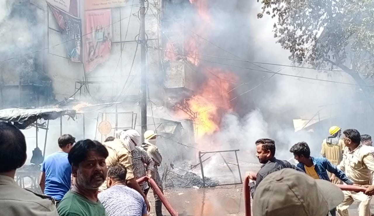 झांसी सीपरी बाजार में जनरल स्टोरों की दुकानों में आगजनी मची भगदड़