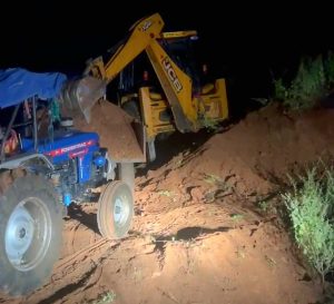 जिलाधिकारी के निर्देश पर एसडीएम मऊरानीपुर सुश्री श्वेता साहू ने तहसीलदार मऊरानीपुर, नायब तहसीलदार मऊरानीपुर एवं थाना प्रभारी मऊरानीपुर के साथ संयुक्त रूप से रात्रि लगभग 11 बजे भ्रमण के दौरान तहसील मऊरानीपुर के ग्राम कुआगाँव में 04 ट्रैक्टर व एक जे०सी०बी० मशीन के द्वारा पहाड़ से मौरम खोदकर अवैध खनन / परिवहन करते हुये पाये गये, जिनके क्रमशः नम्बर है- जे०सी०बी० नम्बर UP93 CT 0419, आयशर 333 चेसिस नम्बर 930814181352, सोनालिका चेचिस नम्बर EZJSR1084087SM, सोनालिका चेसिस नम्बर HZJSL1688368SM, पावरटैक चेसिस नम्बर T053648951AM जिसमें मौरम से लदी हुई एक ट्रैक्टर ट्रॉली एवं तीन ट्रैक्टर ट्रॉली द्वारा मौरम को दल बल को देखते हुए पलट दिया गया, जिनको पकड़ कर 05 वाहनों के चालकों से खनन व परिवहन करने के संबंध वैध कागजातों की जांच करने हेतु मांगा गया तो सभी चालकों के द्वारा कोई भी कागजात प्रस्तुत नहीं किये जाने के कारण चारो ट्रैक्टरों व जे०सी०बी० मशीन को मय मौरम से लदी हुई ट्रॉली को स्थानीय थाना मऊरानीपुर में पांचों वाहनों को सीज कर सुपुर्दगी में दिया गया।
