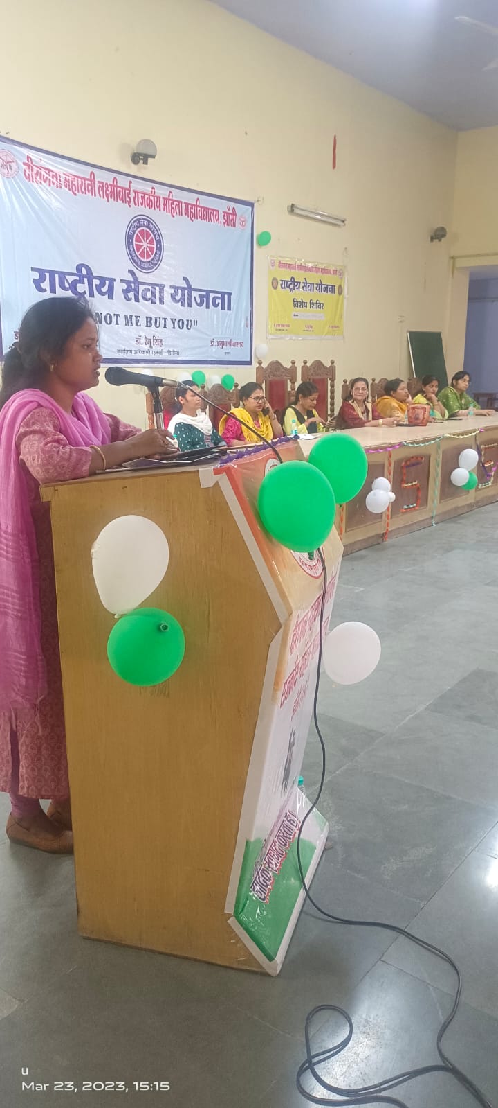 झांसी। वीरांगना महारानी लक्ष्मीबाई राजकीय महिला महाविद्यालय झांसी में राष्ट्रीय सेवा योजना की इकाई प्रथम व द्वितीय के विशेष शिविर का तृतीय दिवस हर्ष पूर्ण संपन्न हुआ। शिविर के प्रथम सत्र में योग शिविर का आयोजन किया गया ,जिसमें बुंदेलखंड विश्वविद्यालय झांसी से योगाचार्य मोहित लखेरा उपस्थित हुए। उन्होंने सभी स्वयंसेविकाओं को योग प्रशिक्षण प्रदान किया एवं योग के महत्व के बारे में विस्तार पूर्वक बताया। शिविर का द्वितीय सत्र बौद्धिक सत्र महिला सशक्तिकरण पर आधारित था। जिसमें मुख्य वक्ता के रूप में विश्व भारती संस्कृति शोध संस्थान झांसी की निदेशक एवं राष्ट्रपति पुरस्कृत डॉ. नीति शास्त्री उपस्थित रही। उन्होंने स्वयं- सेविकाओं को व महिलाओं को आत्म सम्मान पूर्वक समाज में प्रतिष्ठा एवं कीर्ति प्राप्त करने पर विस्तृत चर्चा की । उन्होंने कहा कि झांसी शौर्य ,साहस एवं विद्या की भूमि है । इसी झांसी नगर की बहू महारानी लक्ष्मीबाई ने अपने शौर्य व साहस से आंग्ल शासकों को भी नतमस्तक कर दिया ।आप सब में भी वह शक्ति विद्यमान हैं। समाज के सशक्तिकरण के लिए उसका उपयोग करें यही शिविर की सार्थकता है । महाविद्यालय के प्राचार्य डॉ अनुभा श्रीवास्तव ने स्वयंसेविकाओं को अपनी शिक्षा के माध्यम से समाज को सशक्त करने पर जोर दिया। कार्यक्रम का संचालन डॉ.रेनू सिंह एन.एस.एस प्रभारी इकाई द्वितीय ने किया तथा सभी अतिथियों का आभार डॉ. अजय शंकर यादव एन.एस.एस प्रभारी इकाई प्रथम ने किया। कार्यक्रम में महाविद्यालय के समस्त प्राध्यापक एवं कर्मचारी गण उपस्थित रहे।