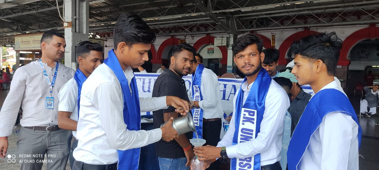 झांसी। शिवपुरी म०प्र झाँसी उ०प्र०भीषण गर्मी को दृष्टिगत रखते हुए पी० के० विश्वविद्यालय के प्रशासनिक निदेशक डॉ० जे० के० मिश्रा के निर्देशन में विश्वविद्यालय के फार्मेसी संकाय में अध्ययनरत छात्र-छात्राओं द्वारा दिनाँक 8 मई से 11 मई तक , समय प्रातः 11 बजे से दोपहर 1:00 बजे तक वीरांगना लक्ष्मीबाई झाँसी रेलवे स्टेशन के प्लेटफार्म न.-01 पर अस्थाई प्याऊ लगाकर यात्रियों को शीतल जल वितरित कर चार दिवसीय शीतल पेयजल सेवा शिविर का शुभारम्भ किया गया I बताते चलें कि पी० के० विश्वविद्यालय के फार्मेसी संकाय के विभागाध्यक्ष डॉ० विवेक गुप्ता सहित संकाय से शिक्षक-शिक्षिकाओं एवं शिक्षार्थियों के सहयोग से वीरांगना लक्ष्मीबाई झाँसी रेलवे स्टेशन के प्लेटफ़ॉर्म क्रमांक 1 पर शीतल जल का वितरण यात्रियों को करने के लिए जल सेवा शिविर प्रारंभ किया गया । इस मौके पर पी० के० विश्वविद्यालय के विद्यार्थियों द्वारा भीषण गर्मी में यात्रीगणों को शीतल जल पिलाकर तृप्त किया गया। वहीं, स्टेशन पर ट्रेन आने पर रेल यात्रियों को जल बोतल में भर कर उनकी सेवा की गई । साथ ही, उन्हें गर्मी से बचाव के उपायों के बारे में भी जानकारी भी प्रदान की गई I चार दिवसीय शीतल पेयजल सेवा शिविर के शुभारम्भ हेतु छात्रों को झाँसी रेलवे स्टेशन के लिए रवाना करते समय विश्वविद्यालय के प्रशासनिक निदेशक डॉ० जे० के० मिश्रा ने कहा कि गर्मी के मौसम में, रेलवे स्टेशनों पर यात्रियों को अक्सर पानी और अन्य आवश्यक पेय पदार्थों की कमी का सामना करना पड़ता है। इस समस्या को ध्यान में रखते हुए, पी.के. विश्वविद्यालय ने आज वीरांगना लक्ष्मीबाई झाँसी रेलवे स्टेशन पर चार दिवसीय शीतल पेयजल सेवा शिविर का आयोजन किया है।विश्वविद्यालय के कुलपति डॉ० (प्रो०) योगेश चन्द्र दुबे ने छात्रों के इस नेक कार्य की सराहना करते हुए कहा कि यह समाज के प्रति उनकी सामाजिक जिम्मेदारी का द्योतक है। इस अवसर पर विश्वविद्यालय के कुलसचिव डॉ० दीपेश नामदेव , डीन अकादमिक डॉ० एमिन फातिमा सहित फार्मेसी संकाय के विभागाध्यक्ष डॉ० विवेक गुप्ता, सहायक प्रोफ़ेसर अनादी तिवारी, कुलदीप एवं फार्मेसी संकाय के शिक्षार्थी उपस्थित रहे ।