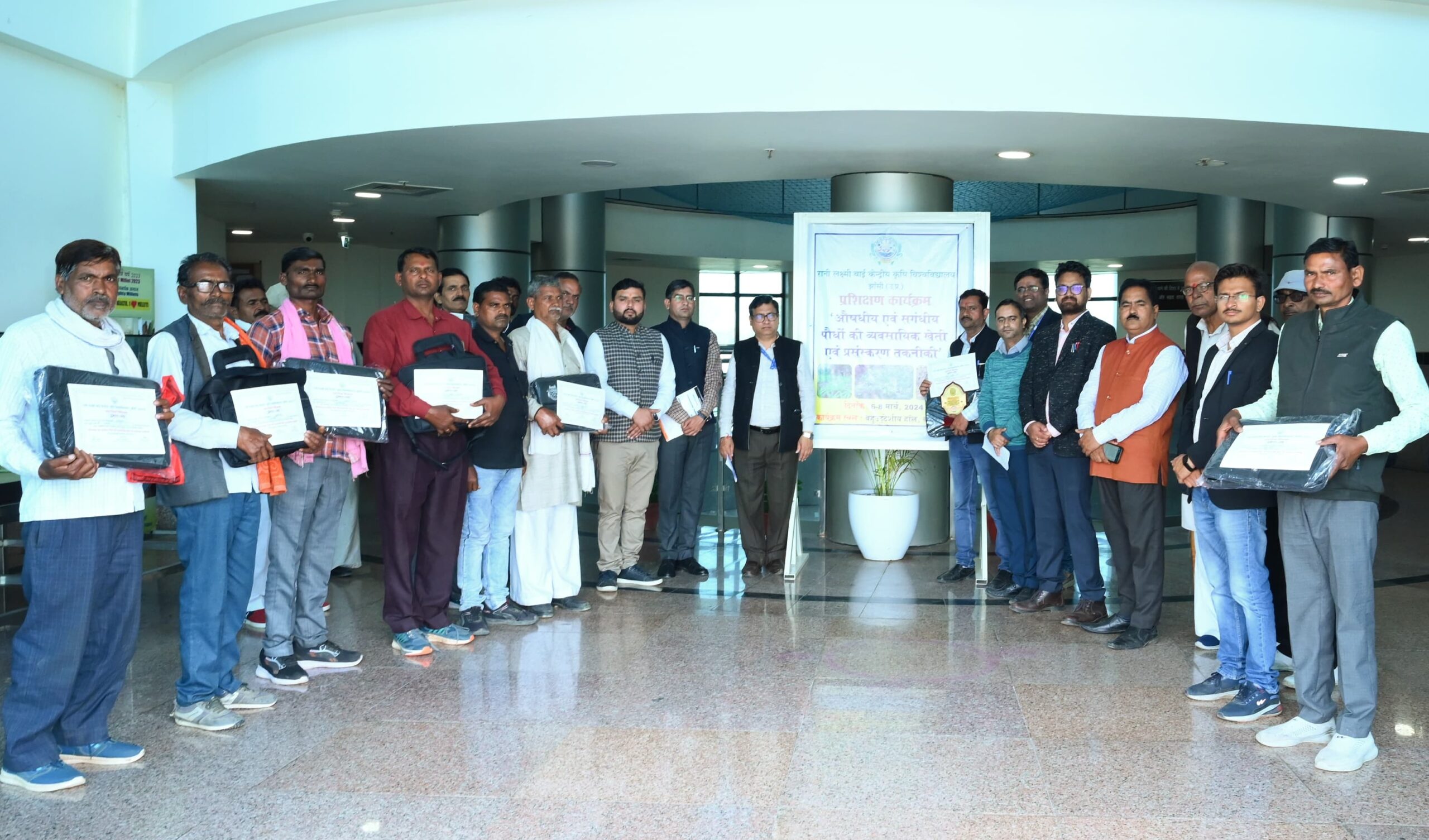 झाँसी। रानी लक्ष्मी बाई केन्द्रीय कृषि विश्वविद्यालय, झाँसी के कुलपति डाॅ. अशोक कुमार सिंह के निर्देशन में बहुउद्धेशीय हाॅल में किसानों की आय वृद्धि के उद्धेश्य से औषधीय एवं सगंधीय पौधों की व्यवसायिक खेती एवं प्रसंस्करण तकनीकी पर तीन दिवसीय कृषक प्रशिक्षण आज सम्पन्न हुआ। मुख्य अतिथि प्रसार शिक्षा निदेशक डाॅ. एसएस सिंह रहे। अधिष्ठाता उद्यानिकी एवं वानिकी डाॅ. एमजे डोबरियाल, सह-प्राध्यापक डाॅ. आरपी यादव विशिष्ट अतिथि थे। स्वागत संबोधन करते हुए कार्यक्रम समन्वयक औषधीय वैज्ञानिक डाॅ. विनोद कुमार ने तीन दिवसीय प्रशिक्षण की विस्तार से जानकारी दी। उन्होंने कहा कि इन प्रशिक्षणार्थियों को तुलसी के अलावा लेमन ग्रास, अश्वगंधा, सफेद मूसली, हल्दी सहित अन्य औषधीय एवं सगंधीय पौधों के बारे में वेज्ञानिक तकनीक से खेती करने के लाभ समझाए। प्रशिक्षणार्थी किसानों ने अपने – अपने अनुभव सांझा किए। डाॅ. आरपी यादव ने कहा कि इस प्रशिक्षण में बंगरा ब्लाक के 25 किसानों को सगंधीय औषधीय, सामुदायिक खेती आदि की विभिन्न जानकारी दी गई। यह जानकारियां निश्चित ही इनके लिए लाभप्रद होंगी। अधिष्ठाता उद्यानिकी एवं वानिकी डाॅ. एमजे डोबरियाल ने कहा कि किसानों को औषधीय पादपों का बीज व नर्सरी उत्पादन, औषधीय आधारित फसलों की खेती, वानिकी के बारे में प्रशिक्षणार्थियों को लाभप्रद जानकारी इस प्रशिक्षण में दी गई। प्रशिक्षणार्थियों ने बताया कि वर्तमान में हमलोग तुलसी की खेती कर रहे हैं। इनमें रामा, श्यामा एवं कृष्णा तुलसी शामिल है। विवि के औषधीय वैज्ञानिकों ने इन तुलसी के अलावा विवि के फार्म में लगी विभिन्न तुलसी के बारे में भी परिचित कराया। उनको बताया गया कि तुलसी के साथ शहद उत्पादन कर अपनी आय और बढ़ा सकते हैं। मुख्य अतिथि प्रसार शिक्षा निदेशक डाॅ. एसएस सिंह ने प्रशिक्षणार्थियों को इस प्रशिक्षण में निश्चित ही विभिन्न जानकारियां मिली होंगी। तुलसी की खेती के साथ – साथ कालमेघ, सफेद मूसली, अश्वगंधा सहित कई लाभप्रद औषधीय फसल हैं इनको भी आप अपना सकते हैं। इनका बाजार आसानी से मिल जाता है। प्रत्येक किसान को पारम्परिक खेती के साथ खेत के 5 से 10 प्रतिशत भाग पर औषधीय खेती कर लाभ ले सकते हैं। इस प्रशिक्षण में जो कुछ आपने सीखा है वह अपनी खेती में प्रयोग अवश्य करें। अन्त में सभी प्रशिक्षणार्थियों को अतिथियों ने औषधीय पौध, किट बैग, प्रमाण पत्र दिया। इस अवसर पर डाॅ. पंकज लावानिया, डाॅ. राकेश कुमार नेगी, नितिन नामदेव आदि उपस्थित रहे। संचालन डाॅ. प्रभात तिवारी ने एवं आभार डाॅ. एएस काले ने व्यक्त किया।
