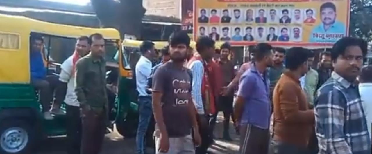 तिपहिया वाहन चालकों ने लगाया जाम, अवैध वसूली और चालान पर लगाम लगाने की मांग