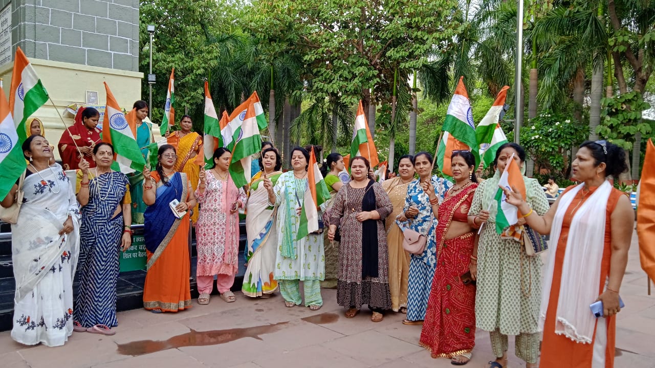 झांसी। ऑपरेशन सिंदूर के तहत भारतीय सेना द्वारा पाकिस्तान में घुसकर आतंकवादियों के विरुद्ध किए गए एक्शन के समर्थन एवं भारतीय सेना के ऑपरेशन सिंदूर को सलाम करते हुए आज झांसी में मातृ शक्ति द्वारा तिरंगा यात्रा का आयोजन किया गया।समस्त मातृशक्ति द्वारा सेना के शौर्य पराक्रम एवं बलिदान के समर्थन में नारे लगाते हुए रानी लक्ष्मीबाई पार्क झांसी से *तिरंगा यात्रा इलाइट चौराहे तक आयोजित की गई, जिसमें भारतीय सेना जिंदाबाद ऑपरेशन सिंदूर जिंदाबाद जैसे अनेक नारे एवं राष्ट्रभक्ति गीतों का आयोजन हुआ ।यात्रा के प्रारंभ में लक्ष्मीबाई पार्क में सभा हुई जिसमें वक्ताओं ने भारतीय वीरांगनाओं एवं भारतीय सेना द्वारा पुलवामा में आतंकी हमले में शहीद लोगों का बदला लेने हेतु ऑपरेशन सिंदूर के तहत आतंकियों को चुन चुन कर मारने पर भारतीय सेना के शौर्य की प्रशंसा की गई एवं समस्त मातृ शक्ति नारी समाज भारतीय सेना के साथ खड़ा है ऐसा संकल्प लिया।यात्रा में प्रतिमा ओझा सुधा, प्रेमानी संगीता जोशी, अरुणा सरावगी, रितु पुरवार, निधि, अंजू, सरिता, प्रेमा, सहित सैकड़ो की संख्या में बहनें एवं मातृशक्ति सम्मिलित हुई।यात्रा का संचालन एवं आभार प्रतिमा ओझा ने किया।