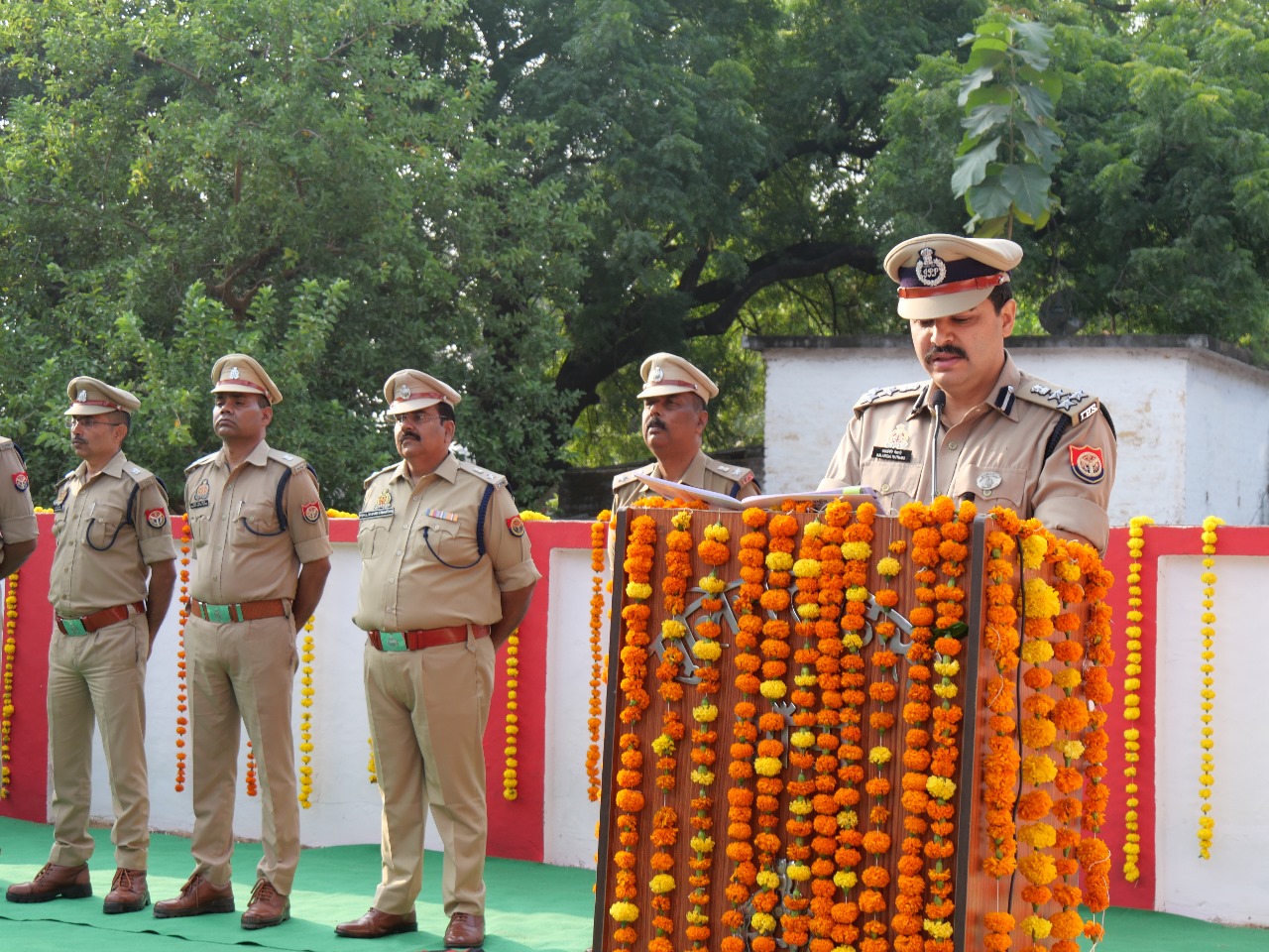 झांसी। पुलिस स्मृति दिवस पर पुलिस लाइन स्थित स्मारग पर पुष्प गुच्छ अर्पित कर शहीदों को नमन करते हुए उन्हें श्रद्धांजलि देकर उनके राष्ट्र एवं समाज में किए गए योगदान को याद किया। सोमवार की सुबह पुलिस लाइन स्मरग पर हर वर्ष की तरह इस वर्ष भी पुलिस शहीद दिवस पर पुलिस उपमहानिरीक्षक झांसी परिक्षेत्र झांसी कलानिधि नैथानी, एसएसपी श्रीमती सुधा सिंह ने शहीद पुलिस कर्मियों के द्वारा राष्ट्र और समाज के लिए दिए गए योगदान को याद करते हुए उन्हे नमन कर पुष्प गुच्छ अर्पित किए और श्रद्धांजलि दी। साथ ही शहीदों के परिजनों को पुलिस विभाग की ओर से उनकी हर संभव मदद करने का भरोसा दिलाया। इस दौरान सेरेमोनियल परेड का भी आयोजन किया गया। इस दौरान समस्त पुलिस अधिकारी, क्षेत्राधिकारी, समस्त थाना प्रभारी निरीक्षक सहित पुलिस कर्मी मौजूद रहे।