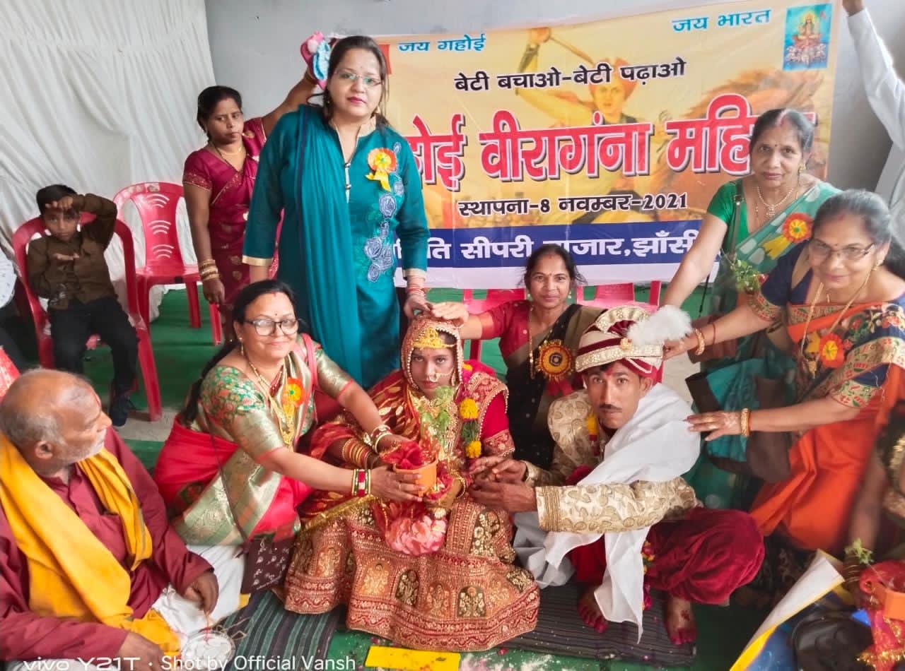 झांसी। आज दिनांक 3 मई 2022 अक्षय तृतीया के पावन अवसर पर गहोई वैश्य पंचायत झांसी के द्वारा गहोई सभागार (सांस्कृतिक सेवा सदन) ग्वालियर रोड पर 9 जोड़ों का सामूहिक विवाह महायज्ञ संपन्न हुआ जिसमें गहोई वीरांगना महिला समिति सिपरी बाजार व नई राहें एनजीओ संस्था द्वारा झांसी की महिलाओं ने तुलसी का पौधा देकर वर-वधू को आशीर्वाद प्रदान किया। 25 वां सामूहिक विवाह महायज्ञ में गहोई वैश्य पंचायत के समस्त पदाधिकारी के साथ ही समाज के सैकड़ों की तादात में स्वजातिय बंधुओं ने अपनी भागीदारी दी और कार्यक्रम की सरहना कि । इस दौरान गाहोई वीरांगना महिला समिती की अध्यक्ष अरुणा गुप्ता, नई राहें संस्था की अध्यक्ष प्रियंका गुप्ता, आशा मोर, निर्मला गुप्ता, मेघा बिलैया, निधि नगरिया, रजनी सेठ, रानी सेठ, सीमा जुड़ेले ,कृष्णा गुप्ता, वंदना, अंजना , मंजू सरावगी, ममता गुप्ता आदि महिलाएं उपस्थित रहे।