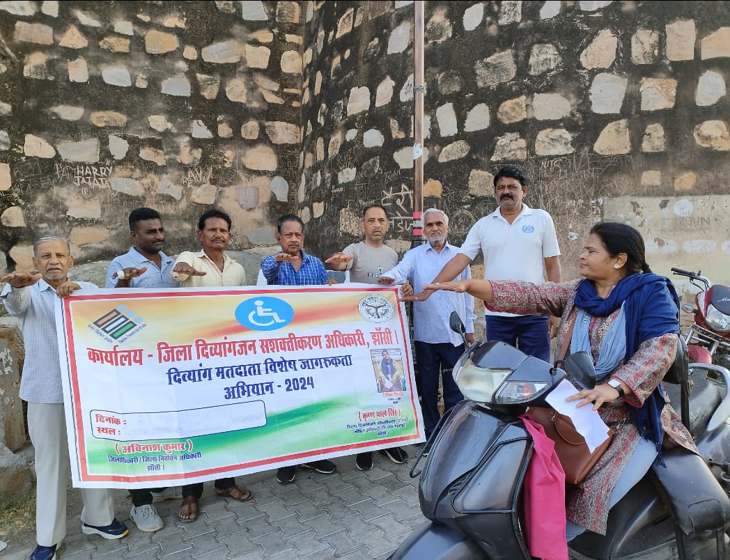 झाॅंसी। जिलाधिकारी/जिला निर्वाचन अधिकारी/एवं दिव्यांगजन सशक्तिकरण अधिकारी/नोडल अधिकारी विभाग के तत्वावधान मे 20 मई जनपत मे होने वाले लोकसभा सामान्य चुनाव शत् प्रतिशत मतदान हेतु मतदाताओं को जागरूक करने के लिए स्वीप आइकॉन- उडान जन कल्याण समिति प्रबंधक- सीमा तिवारी द्वारा लागातार मतदाता जागरूकता अभियान के क्रम मे 16 मई को किले पर ओर निर्मीला स्कूल के निकट मतदाताओं को मतदान करने मे अपनी भागीदारी सुनिश्चित करने हेतु स्लोगन वोट जैसा कुछ नहीं,वोट जरूर डालेंगे हम के साथ मतदाताओं को शपथ ग्रहण कराई गई ! इस अवसर पर मीरा तिवारी, रेखा चोबै,गीता शर्मा,हर्षिता वर्मा,शारदा सिंह,सुनीता चौहान,नारायणी शर्मा,नीता गुप्ता,संजय साहू शरीफ खान, रमेश चन्द्र प्रेम यादव,आविद आदि उपस्थित रहे।
