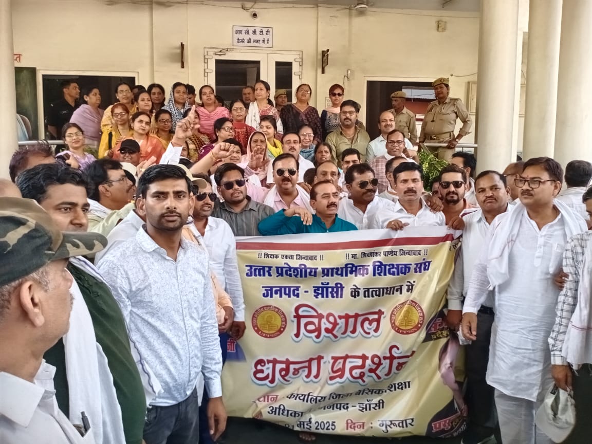 झांसी। उत्तर प्रदेशीय प्राथमिक शिक्षक संघ के तत्वावधान में दर्जनों शिक्षक जिलाधिकारी कार्यालय पहुंचे। जहां उन्होंने मुख्यमंत्री संबोधित चौदह सूत्रीय मांग पत्र जिलाधिकारी को सौंपा ओर मांग पूरी करने की मांग की। गुरुवार को उत्तर प्रदेशीय प्राथमिक शिक्षक संघ के तत्वावधान में जिलाध्यक्ष अजय यादव के नेतृत्व में दर्जनों शिक्षक हाथ में वैनर लेकर जिलाधिकारी कार्यालय पहुंचे। यहां उन्होंने जमकर प्रदर्शन करते हुए मुख्यमंत्री के नाम संबोधित चौदह सूत्रीय मांग पत्र ज्ञापन सौंपा। इस दौरान उन्होंने मांग करते हुए बताया कि पुरानी पेंशन प्रणाली बहाल की जाए, भीषण गर्मी के चलते विद्यालय के समय के संचालन को पूर्व भी भांति सुबह सात बजे से बारह बजे तक किया जाए, शिक्षकों की पदोन्नति तथा प्रोन्नत वेतनमान प्रदान की जाए, स्थानांतरण की व्यवस्था प्रदान की जाए, सहित चौदह मांग पत्र देते हुए मांग पूरी करने की मांग की।