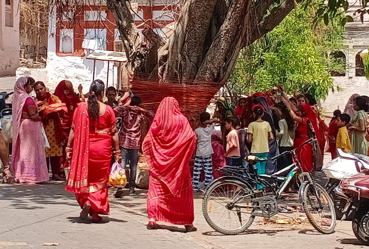 झांसी। अपने सुहाग की सलामती और खुशहाल जीवन के लिए सुहागिन महिलाओं ने वट सावित्री का व्रत रखकर कच्चा सूत बांधकर अपने सुहाग की रक्षा और खुशहाल जीवन की कामना की।हर वर्ष की तरह इस वर्ष भी ज्येष्ठ मास की अमावस्या पर सुहागिन महिलाओं ने वट सावित्री का व्रत रखकर बरगद के पेड़ की पूजा अर्चना की ओर कच्चा सूत सात बार बांधा और परिक्रमा की। सुहागिन महिलाओं ने अपने पति की लंबी आयु और दांपत्य जीवन खुशहाल हो इसकी कामना के साथ व्रत रखकर पूजा रचना की। बताया जाता है कि इस व्रत को रखने और पूजा रचना करने से पति और दांपत्य जीवन में आने वाली कठिनाइयों से मुक्ति मिलती है। सुहागिन महिलाएं आज सुबह से ही पूजा अर्चना में जुटी रही।