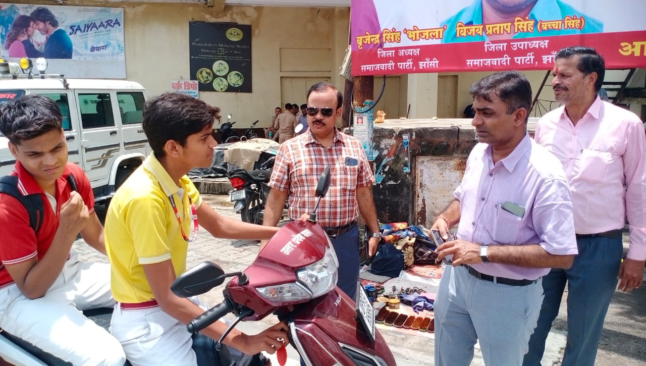 झांसी। सड़क दुर्घटनाओं ओर यातायात नियमों का पालन कराने के लिए लगातार चलाए जा रहे सड़क सुरक्षा सप्ताह अभियान के तहत यातायात पुलिस ओर परिवहन विभाग ने संयुक्त अभियान चलाकर दो पहिया ओर तीन पहिया वाहन चालकों ओर स्कूली बच्चों को रोक कर उन्हें यातयात के नियम बताए साथ ही नियम विरुद्ध वाहन चलाने पर उनके चालान किए साथ ही नाबालिग वाहन चालकों के चालान कर उनके परिजनों ओर स्कूल प्रशासन को भी नोटिस पहुंचाए जाएंगे। शनिवार को जिलाधिकारी के निर्देशन में परिवहन विभाग ओर यातायात पुलिस ने इलाईट चौराहे पर वाहन चेकिंग अभियान चलाया। इस अभियान में उन्होंने ऐसे नाबालिग स्कूलों बच्चे जो दो पहिया वाहनों से स्कूल आ जा रहे है। उन्हें रोक कर उन्हें यातयात के नियम बताए साथ ही उनके वाहनों का चालान भी किया। इसके अलावा दो पहिया बुलेट ओर तीन पहिया ओर चार पहिया गाड़ियों का भी चालान कर उन्हें यातयात नियम का पालन कर वाहन चलाने के निर्देश दिए। इस दौरान परिवहन अधिकारी ने बताया कि यह अभियान जिलाधिकारी के निर्देशन में सप्ताह में दो दिन चलाया जाएगा। साथ ही नाबालिग स्कूली बच्चे जो वाहनों से आते जाते है उनके वाहनों के चालान किए जाएंगे और उनके अभिभावक ओर स्कूल प्रशासन को नोटिस भेज कर जबाव लिया जाएगा।