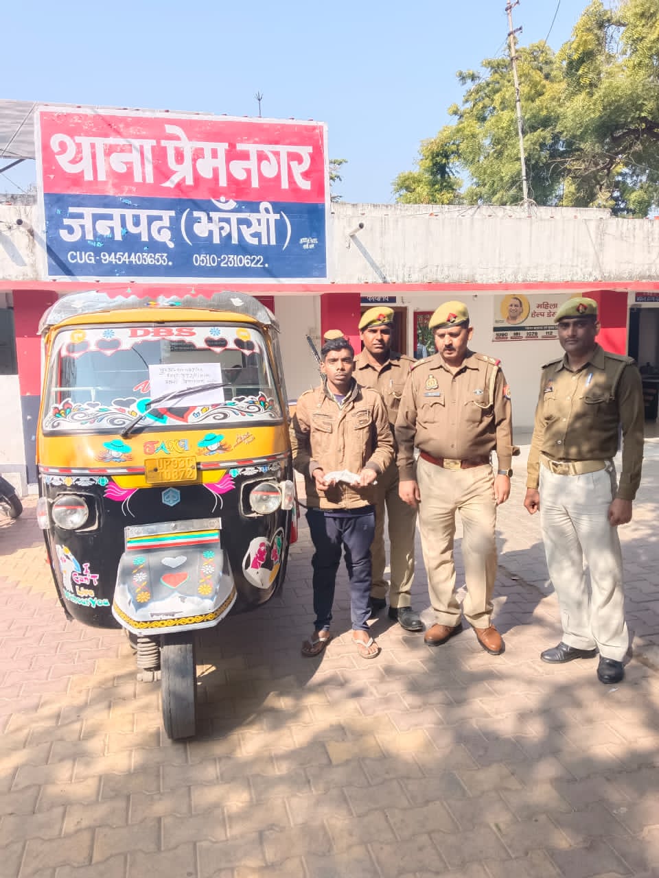 झांसी। एसएसपी राजेश एस के निर्देशन में अपराध और अपराधियों के। खिलाफ चलाए जा रहे अभियान के तहत प्रेमनगर थाना पुलिस ने शातिर चोर को गिरफ्तार कर उसके कब्जे से चोरी की आपे ओर एक तमंचा कारतूस बरामद कर लिया है।जानकारी के मुताबिक प्रेमनगर थाना प्रभारी निरीक्षक संजय शुक्ला के नेतृत्व में हसारि चौकी पुलिस देर रात गस्त कर रही थी। तभी सूचना मिली की डागरिया के पास एक शातिर युवक चोरी की घटनाओं को अंजाम देता है। वह खड़ा हुआ है, इस सूचना पर मौके पर पहुंची पुलिस ने घेराबंदी करते हुए चोर को दबोच कर उसके कब्जे से चोरी की आपे यूपी 93 सीटी 0892 ओर एक तमंचा दो कारतूस बरामद कर लिए।