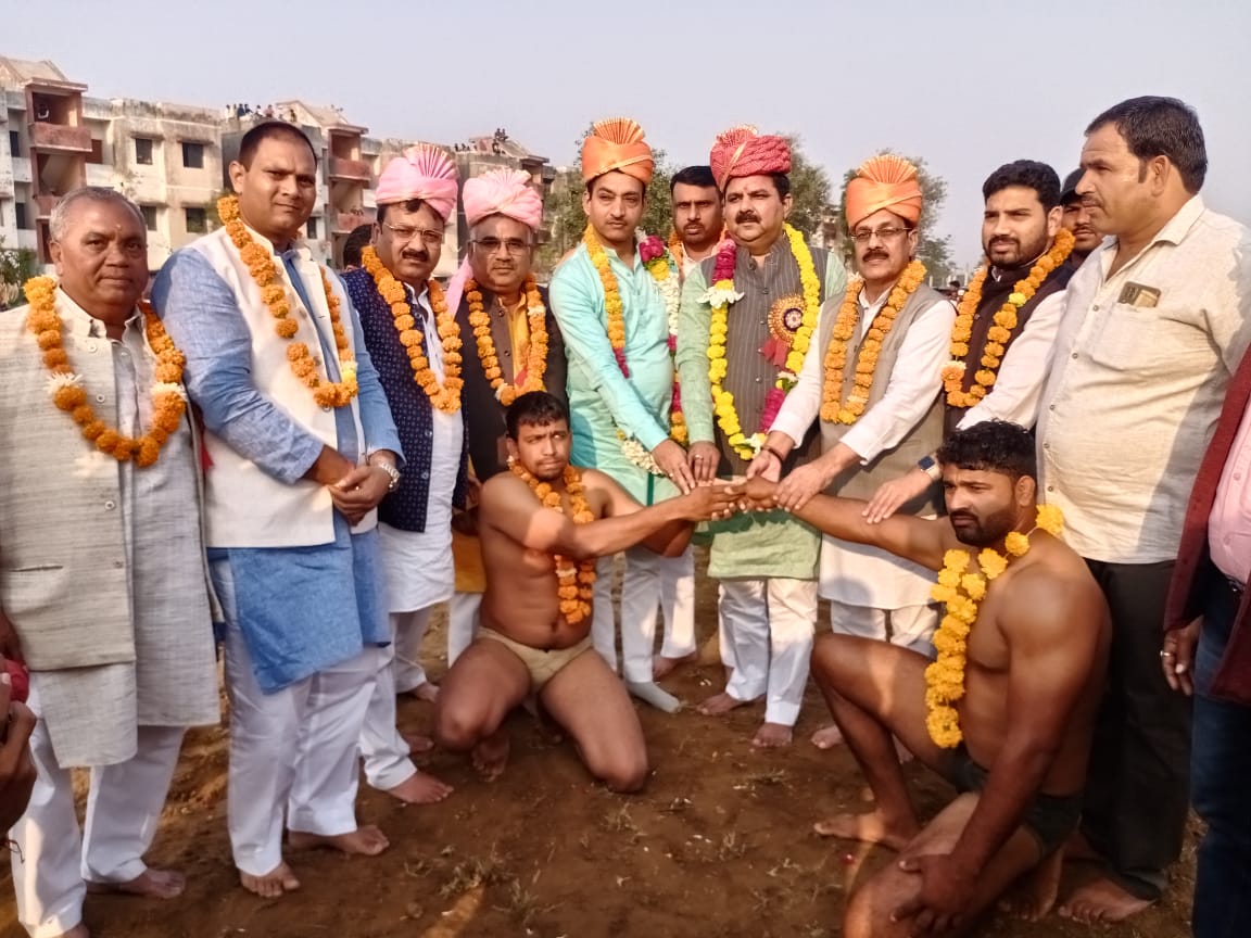 झांसी। करारी में आज विराट दंगल का आयोजन किया गया। जिसमे उत्तर प्रदेश मध्य प्रदेश सहित कई बड़े शहरों के नामी गिरामी पहलवानों ने भाग लिया। हर वर्ष की तरह इस वर्ष हुए दंगल में तीस से अधिक पहलवान उपस्थित हुए थे।रविवार करारी में हुए विराट दंगल के आयोजक पूर्व बुंदेलखंड केसरी बाल जी गुर्जर ने बताया की यह दबंग वह प्रतिवर्ष अपने पिता स्व. महाबल सिंह तथा दादा राम बाबू गुर्जर की स्मृति में कराते है। रविवार को हुए दबंग में मुख्यातिथि सदर सदर विधायक रवि शर्मा, विशिष्ठ अतिथि महापौर रामतीर्थ सिंगल, महानगर अध्यक्ष मुकेश मिश्रा, जिला पंचायत अध्यक्ष पवन गौतम, दिलीप पांडे, धर्मेंद्र कुशवाह, ने पहलवानों से परिचय कर शुभारंभ किया। बालजी गुर्जर ने बताया की इस दबंग में हरियाणा, मध्य प्रदेश और उत्तर प्रदेश, पंजाब सहित कई जिलों के बड़े बड़े पहलवान आए हुए। सबसे बड़ी कुश्ती एक लाख रुपया इनाम तक की है। वही दंगल में आए अतिथियों को हार माला और पगड़ी ओर पगड़ी पहना कर स्वागत किया। संचालन पहलवान मेहरबान सिंह ने किया और आभार वालजी गुर्जर ने किया।