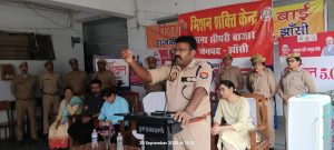 झांसी। मुख्यमंत्री उ0प्र0 सरकार द्वारा बालिकाओं/महिलाओं को नारी सुरक्षा/नारी स्वावलंबन एवं नारी सशक्तिकरण हेतु महत्वाकांक्षी योजना “मिशन शक्ति अभियान फेज-5.0″ का प्रारम्भ किया गया है। जिसके क्रम में पुलिस महानिदेशक उत्तर प्रदेश व अपर पुलिस महानिदेशक, कानुपर जोन, कानपुर के कुशल मार्गदर्शन, पुलिस महानिरीक्षक, झाँसी परिक्षेत्र, झाँसी के कुशल पर्येवेक्षण व वरिष्ठ पुलिस अधीक्षक, झाँसी के कुशल निर्देशन में झाँसी पुलिस ने महिलाओं/बालिकाओं की सुरक्षा हेतु “मिशन शक्ति अभियान फेज 5.0” के तहत जनपद के विभिन्न थानों पर गठित महिला सुरक्षा दल व थाने पर नियुक्त महिला बीट पुलिसकर्मियों द्वारा थाना क्षेत्र के बीट, गांव, स्कूल, कॉलेज, पंचायत भवन, प्रमुख चौराहों, बाजारों, बस स्टैण्ड, माँ दुर्गा पण्डाल, मन्दिर आदि स्थानों पर भ्रमण करते हुए बालिकाओं/महिलाओं से वार्ता कर महिला सुरक्षा, सम्मान, शासन द्वारा संचालित जनकल्याणकारी/महिला सशक्तिकरण योजनाओं एवं साइबर अपराध से बचाव आदि के सम्बन्ध में जागरूक करने सहित शासन द्वारा जारी विभिन्न हेल्पलाइन नम्बरों के सम्बन्ध में लगातार जानकारी दी जा रही है।