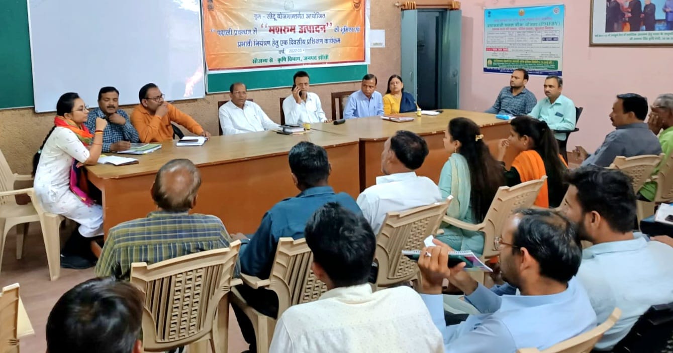 झांसी। आज कृषि भवन स्थित उप संभागीय सभागार में इन-सीटू योजना अंतर्गत आयोजित पराली प्रबंधन में “मशरूम उत्पादन” की भूमिका एवं प्रभावी नियंत्रण हेतु एक दिवसीय प्रशिक्षण कार्यक्रम उप कृषि निदेशक श्री महेंद्र पाल सिंह की अध्यक्षता में आयोजित हुआ। गोष्ठी व प्रशिक्षण कार्यक्रम में पराली जलाने से होने वाले दुष्प्रभाव एवं प्रभावी नियंत्रण विषय पर महत्वपूर्ण जानकारी साक्षा करते हुए जानकारी को क्षेत्र की अन्य महिलाओं/किसानों को भी दिए जाने के निर्देश दिए ताकि गांव का पर्यावरण दूषित ना हो और आय में बढ़ोतरी हो। उप कृषि निदेशक श्री महेंद्र पाल सिंह ने कहा कि आज के प्रशिक्षण कार्यक्रम का मुख्य उद्देश्य मशरूम उत्पादन व पराली न जलाने से संबंधित होने के साथ-साथ किसानों की आय में बढ़ोतरी करना है। उन्होंने कहा कि पराली के माध्यम से किसानों की आय बढ़ायी जाने की उद्देश्य से स्वयं सहायता समूह की महिलाओं को भी इस कार्यक्रम में जोड़ा जाए। उन्होंने प्रशिक्षण प्राप्त कर रहे अधिकारी व कर्मचारियों से आव्हान किया कि महिला समूह की महिलाएं सदस्यों को प्रेरित किया जाए। उन्होंने बताया कि किसानी और खेती में महिलाओं की सहभागिता अधिक है इसलिए महिलाओं पर अधिक फोकस किया जाए। कृषि भवन के उप संभागीय सभागार में आयोजित एक दिवसीय कार्यशाला में जिला कृषि अधिकारी श्री के के सिंह द्वारा कुपोषण की रोकथाम हेतु हरी सब्जियां व फलों के बारे में जानकारी दी गई जिनका प्रभाव हमारे पोषण पर पड़ता है। उन्होंने इसके अतिरिक्त बताया कि जो लोग अपनी खेतों में पराली जलाते हैं,वह ना जलाएं क्योंकि इससे मिट्टी की उर्वरकता कम होती है व मिट्टी ऊसर हो जाती है,जिससे फसल पर प्रतिकूल प्रभाव पड़ता है। पराली जलाने से हमारा पर्यावरण दूषित होता है जिसका प्रभाव हमारे जीवन पर पड़ता है। उन्होंने गोष्ठी में फसल अवशेष अथवा पराली जलाने से होने वाले नुकसान एवं इसके उचित प्रबंधन से होने वाले लाभों को समूह की महिलाओं को विस्तार से बताया। उन्होंने सहायता समूह की महिलाओं के द्वारा वेस्ट डीकम्पोजर के प्रयोग को बढ़ावा दिये जाने पर विशेष बल दिया। उन्होंने समूह की महिलाओं को फसल अवशेष के उचित प्रबंधन हेतु इन-सीटू योजनान्तगर्त नव विकसित क़ृषि यंत्रों यथा सुपर स्ट्रा मैनेजमेनट सिस्टम (सुपर एस0एम0एस0), हैप्पीसीडर, सुपर सीडर, जीरो टिल सीड कम फ़र्टिलाइज़र ड्रिल, श्रब मास्टर, पेडी स्ट्राचार, श्रेडर, मल्चर, रोटरी स्लेार, हाइड्रोलिक रिवसेर्बल, एम0बी0प्लाऊ, बेलिंग मीन, क्राप रीपर की जानकारी देते हुये विभाग द्वारा अनुमन्य अनुदान से भी परिचित कराया और इन सभी का लाभ लेने के लिए प्रेरित किया। उन्होंने शासन की मंशा के अनुरूप धान का पुवाल ग्राम सभा द्वार