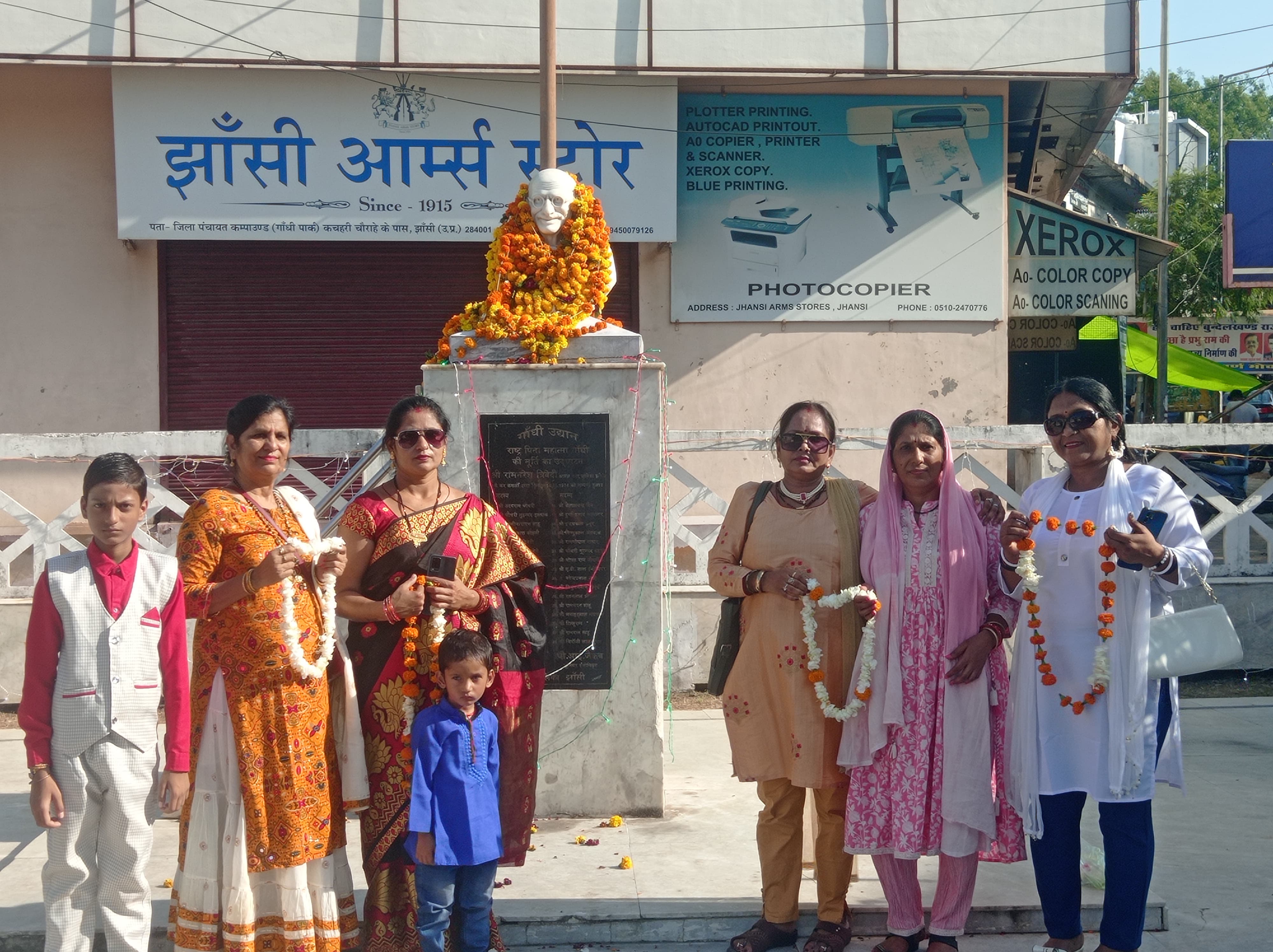 झांसी। दो अक्टूबर राष्ट्रपिता महात्मा गांधी की जयंती पर उन्हें याद करते हुए नमन किया गया। इस दौरान मानव सेवा ट्रस्ट की संस्थापक स्प्रहा श्रीवास्तव ने अपने ट्रस्ट के पदाधिकारियों और सदस्यों के साथ कचहरी चोराहा स्थित गांधी उद्यान में महात्मा गांधी की प्रतिमा पर माल्यार्पण उन्हे नमन किया। स्प्राहा श्रीवास्तव ने गांधी जी के जीवन पर प्रकाश डालते हुए देश को आजादी दिलाने और देश को उसका हक दिलाने के लिए उनके द्वारा किए गए आंदोलन को भी याद करते हुए सभी को राष्ट्रपिता महात्मा गांधी के मार्ग दर्शन पर चलने का आव्हान किया। इस दौरान कीर्ति गुप्ता, रजनी सिंह, चित्रा सिंह, निर्मला सिंह, पर्व श्रीवास्तव, आदि उपस्थित रहे।